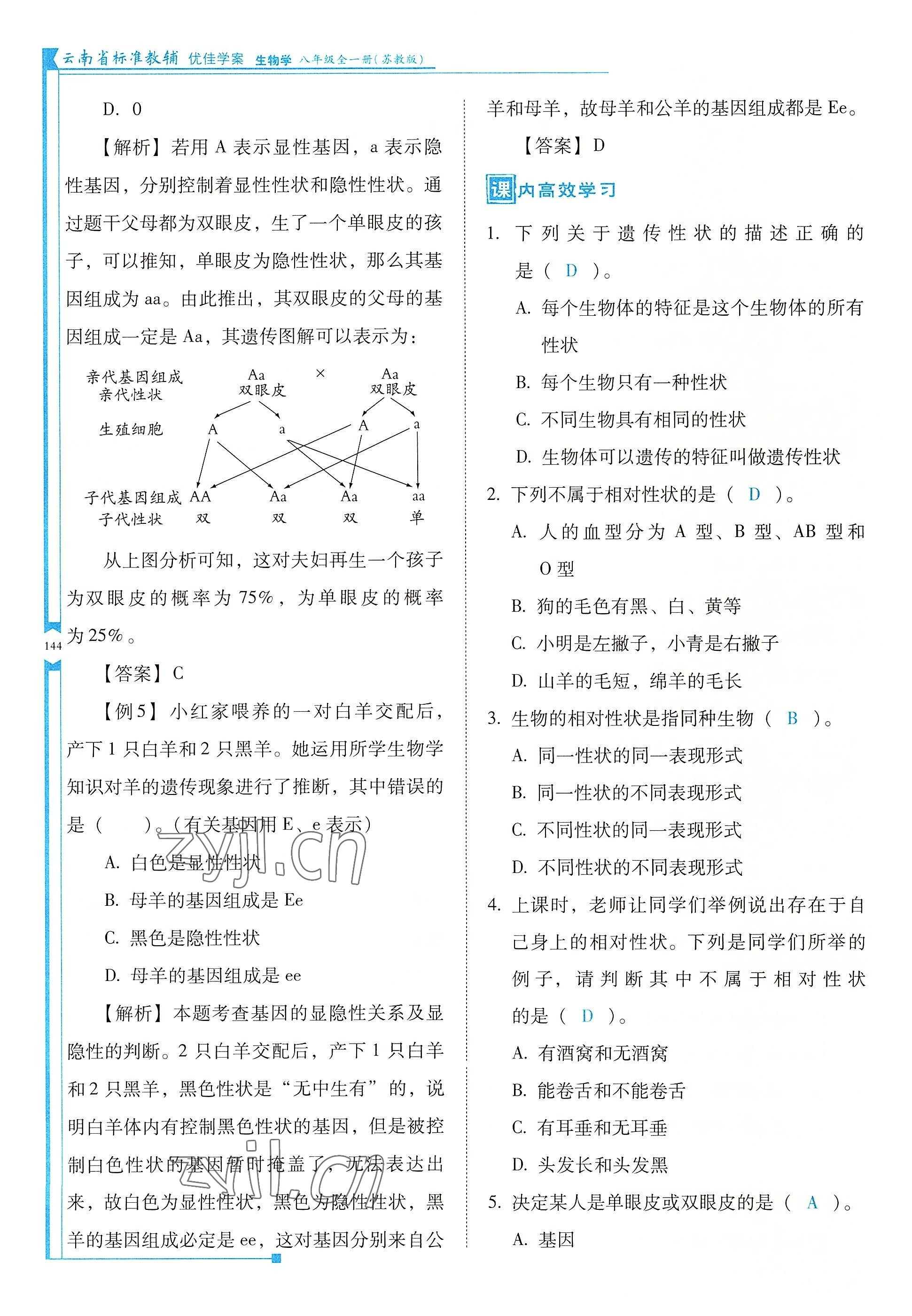 注:目前有些书本章节名称可能整理的还不是很完善,但都是按照顺序排列的,请同学们按照顺序仔细查找。练习册 2022年云南省标准教辅优佳学案八年级生物全一册苏教版 答案主要是用来给同学们做完题方便对答案用的,请勿直接抄袭。