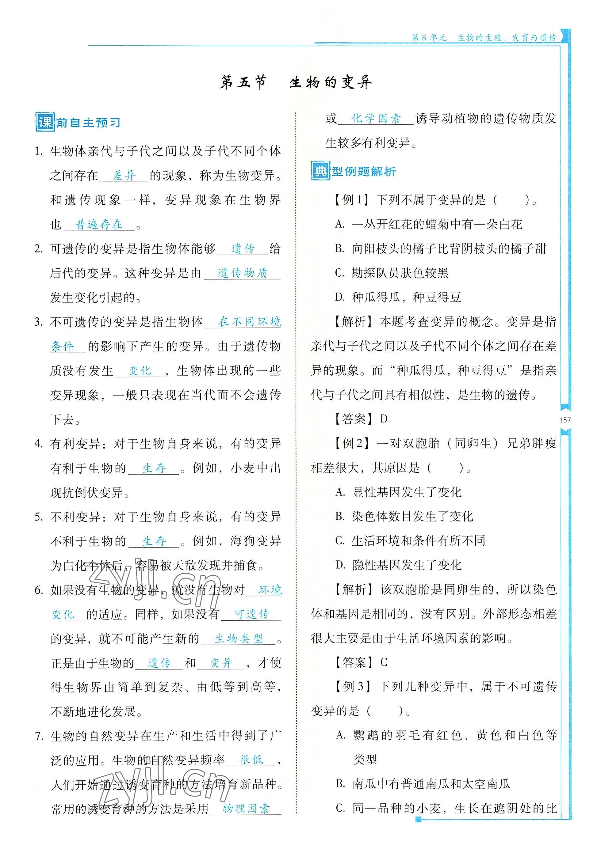 2022年云南省标准教辅优佳学案八年级生物全一册苏教版