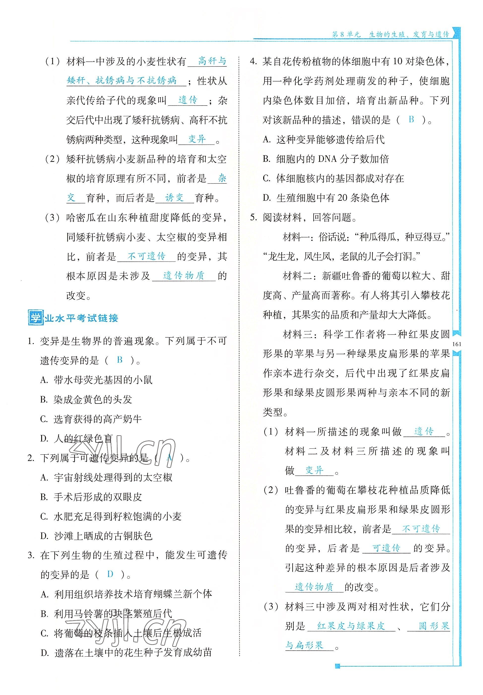 注:目前有些书本章节名称可能整理的还不是很完善,但都是按照顺序排列的,请同学们按照顺序仔细查找。练习册 2022年云南省标准教辅优佳学案八年级生物全一册苏教版 答案主要是用来给同学们做完题方便对答案用的,请勿直接抄袭。