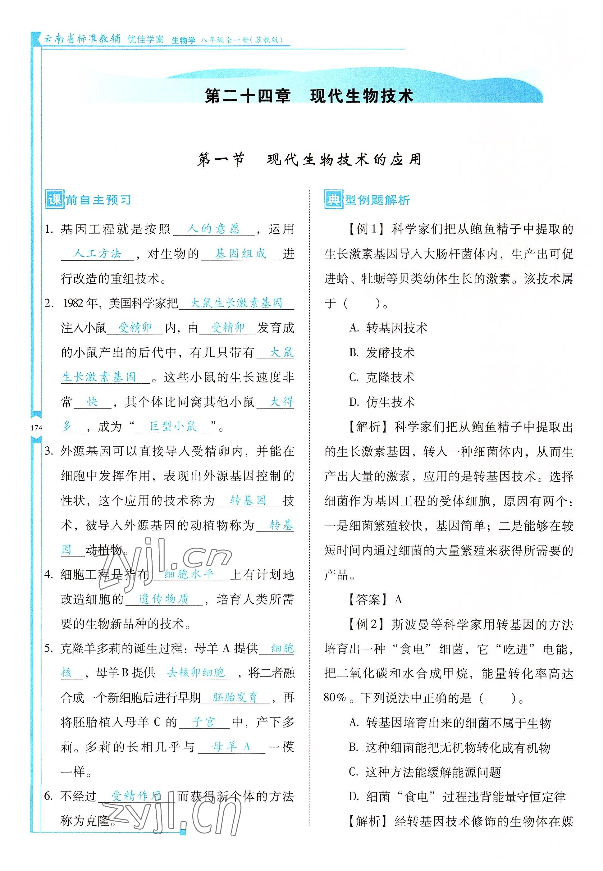 注:目前有些书本章节名称可能整理的还不是很完善,但都是按照顺序排列的,请同学们按照顺序仔细查找。练习册 2022年云南省标准教辅优佳学案八年级生物全一册苏教版 答案主要是用来给同学们做完题方便对答案用的,请勿直接抄袭。
