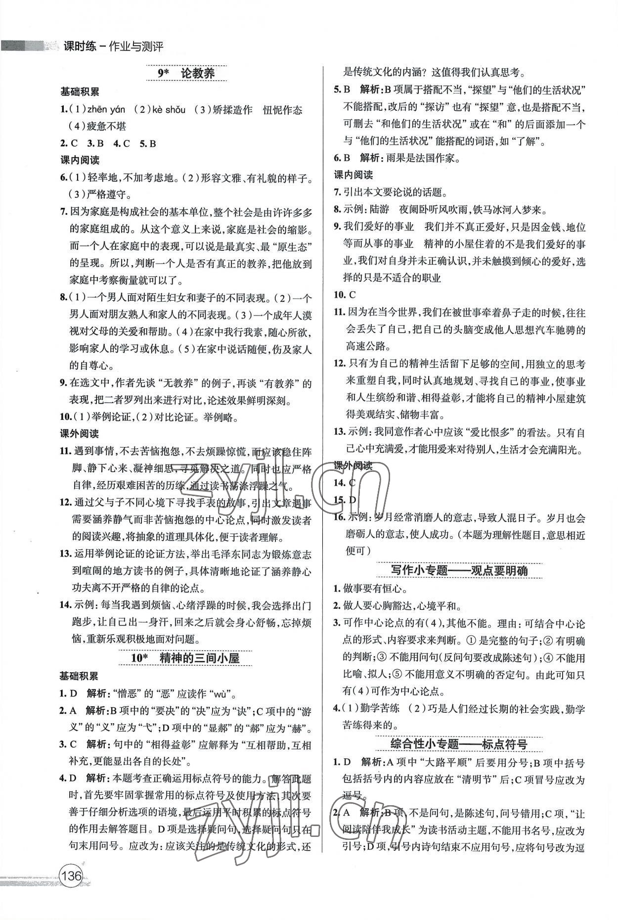 注:目前有些书本章节名称可能整理的还不是很完善,但都是按照顺序排列的,请同学们按照顺序仔细查找。练习册 2022年课时练作业与测评九年级语文上册人教版 答案主要是用来给同学们做完题方便对答案用的,请勿直接抄袭。