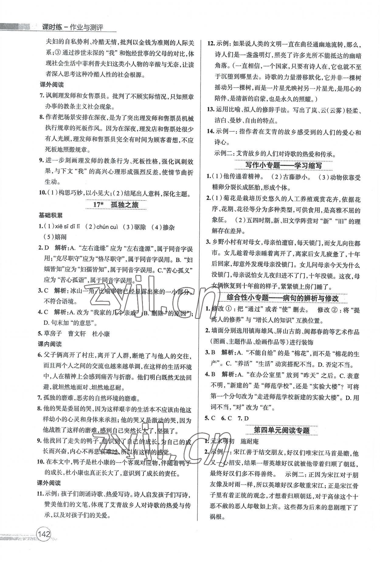 注:目前有些书本章节名称可能整理的还不是很完善,但都是按照顺序排列的,请同学们按照顺序仔细查找。练习册 2022年课时练作业与测评九年级语文上册人教版 答案主要是用来给同学们做完题方便对答案用的,请勿直接抄袭。
