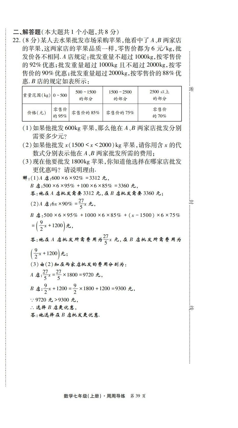 注:目前有些书本章节名称可能整理的还不是很完善,但都是按照顺序排列的,请同学们按照顺序仔细查找。练习册 2022年学业水平测试卷七年级数学上册北师大版 答案主要是用来给同学们做完题方便对答案用的,请勿直接抄袭。