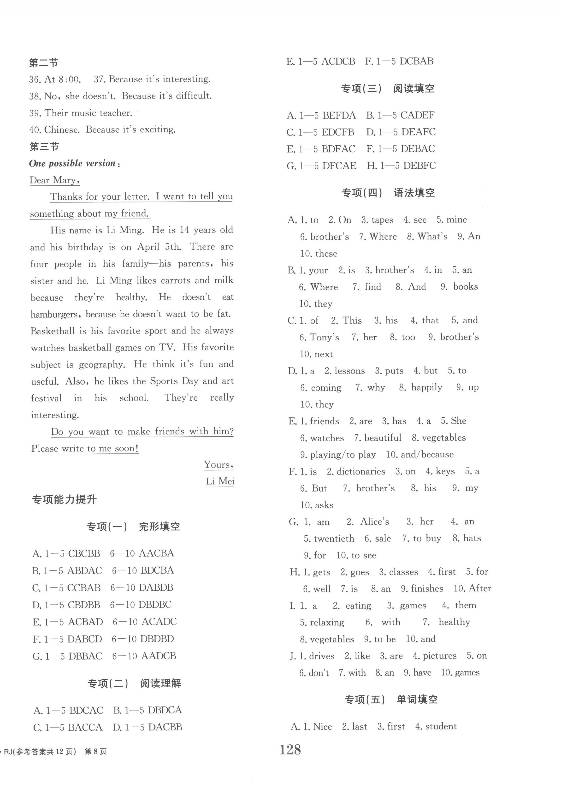 注:目前有些书本章节名称可能整理的还不是很完善,但都是按照顺序排列的,请同学们按照顺序仔细查找。练习册 2022年全程检测卷七年级英语上册人教版 答案主要是用来给同学们做完题方便对答案用的,请勿直接抄袭。