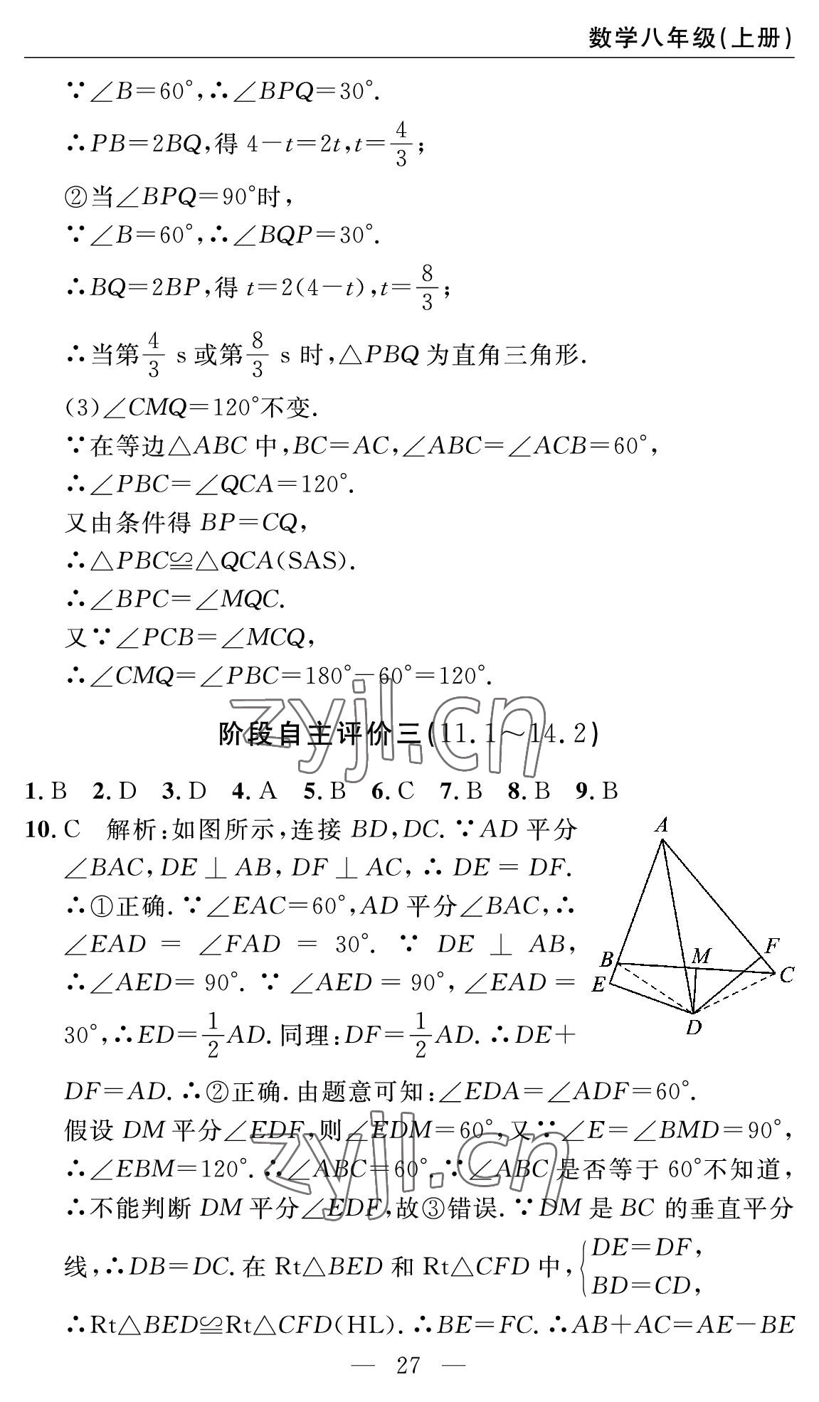 2022年智慧课堂自主评价八年级数学上册人教版十堰专版