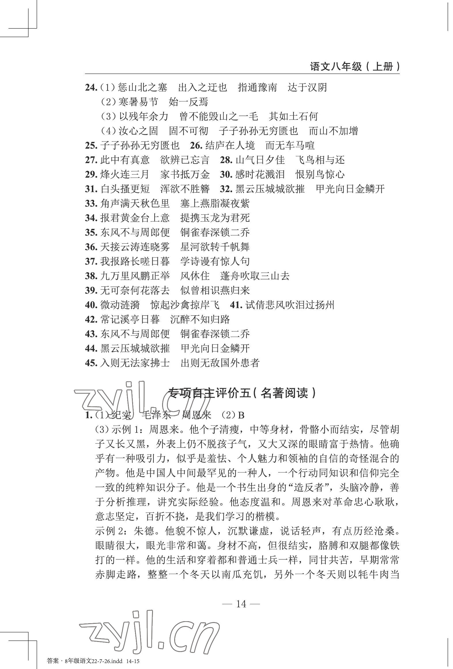 2022年智慧课堂自主评价八年级语文上册人教版十堰专版