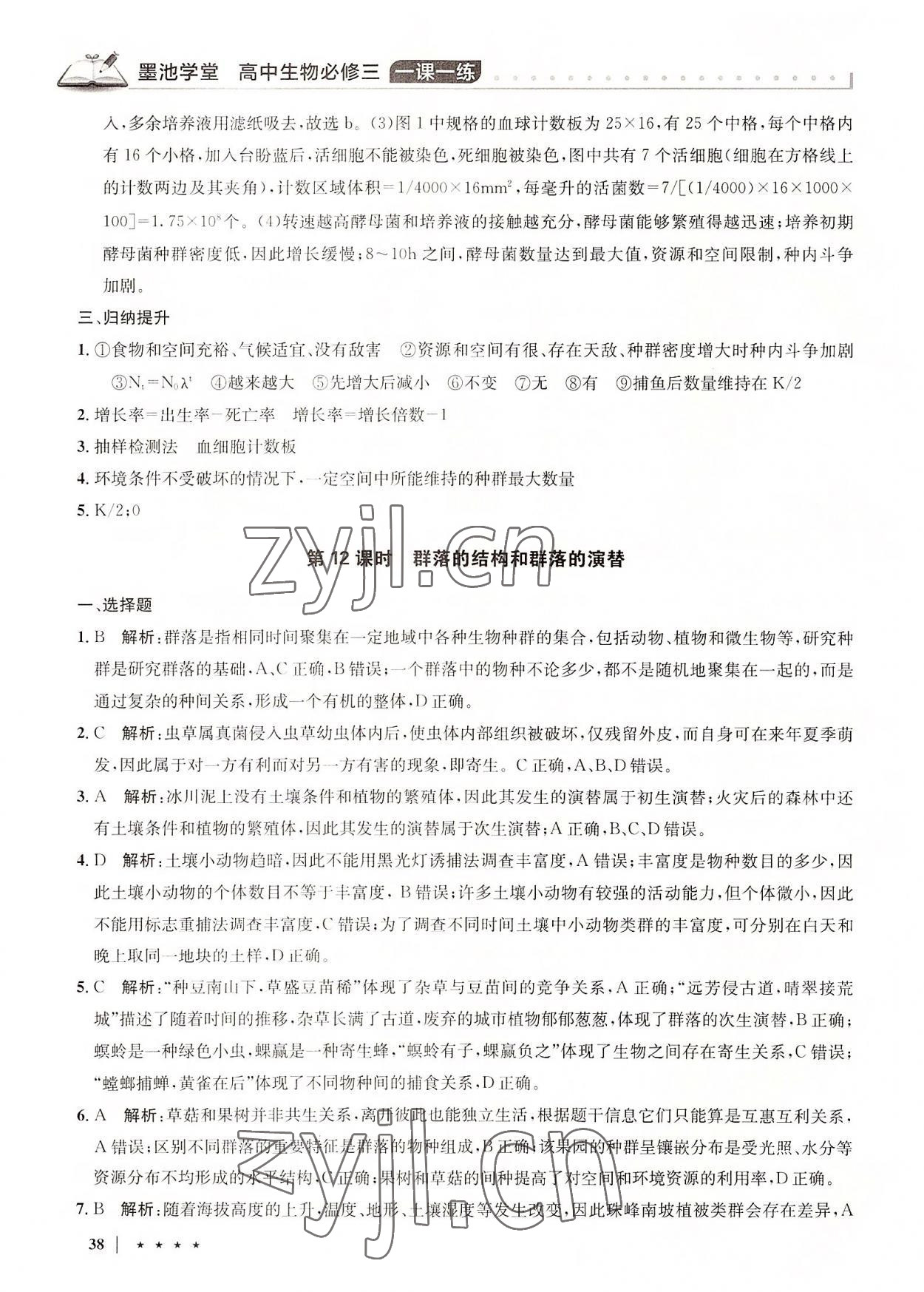 注:目前有些书本章节名称可能整理的还不是很完善,但都是按照顺序排列的,请同学们按照顺序仔细查找。练习册 2022年墨池学堂高中生物必修3人教版 答案主要是用来给同学们做完题方便对答案用的,请勿直接抄袭。