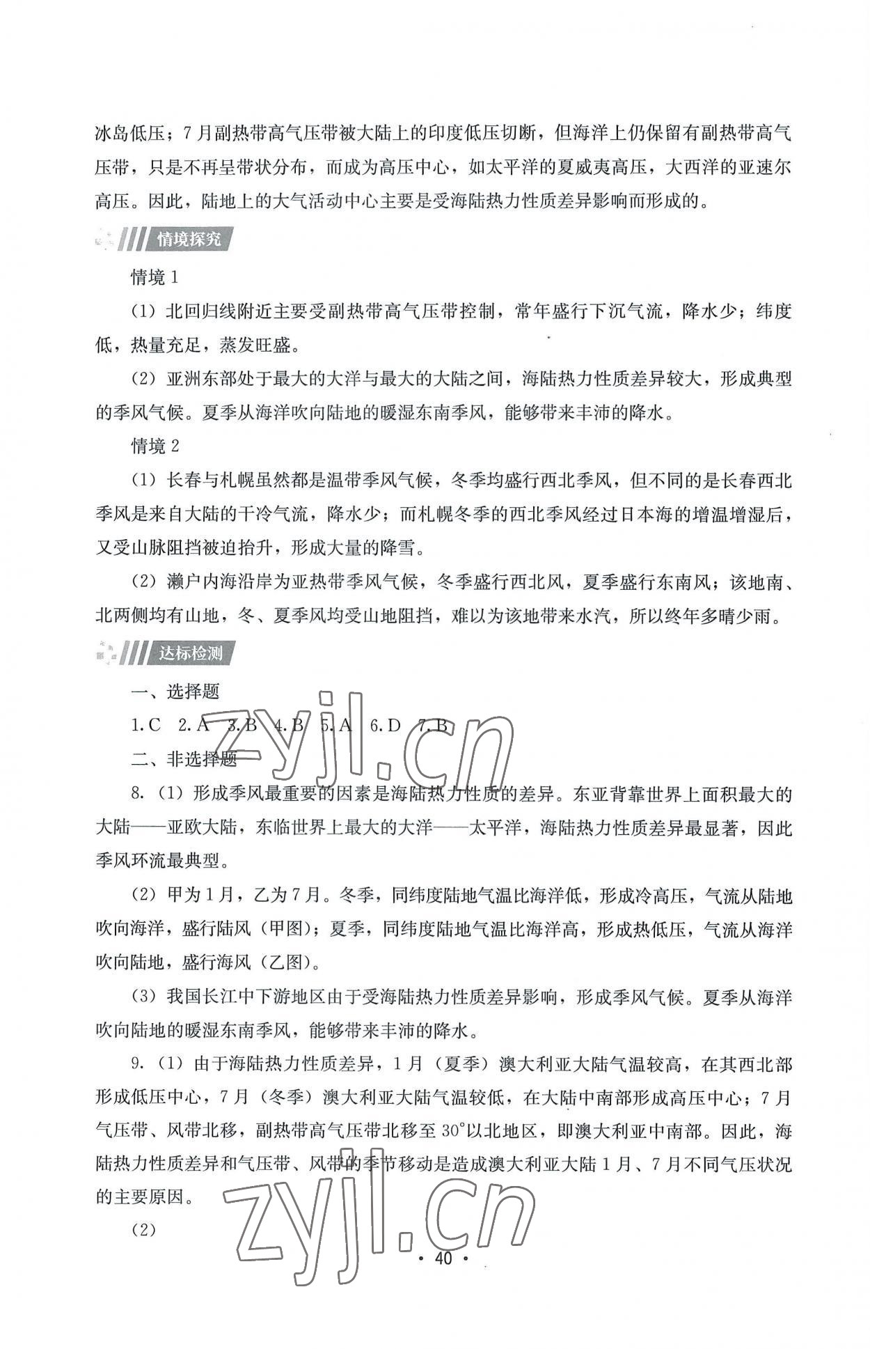 2022年同步练习册湖南教育出版社高中地理选择性必修1湘教版