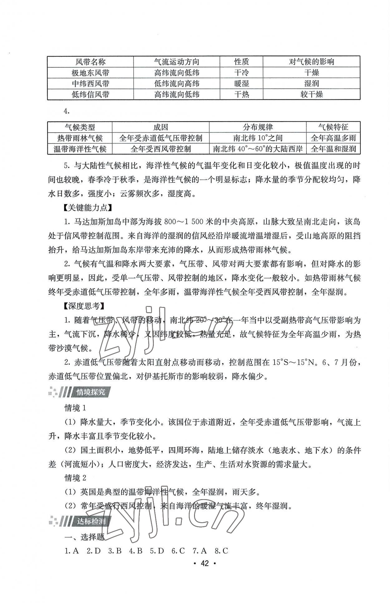 2022年同步练习册湖南教育出版社高中地理选择性必修1湘教版