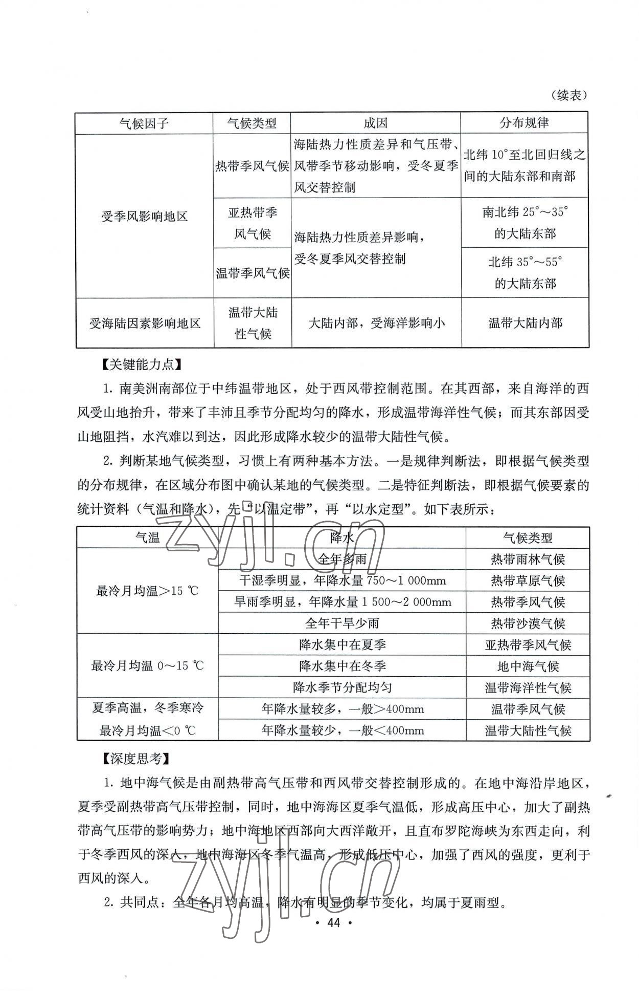 2022年同步练习册湖南教育出版社高中地理选择性必修1湘教版