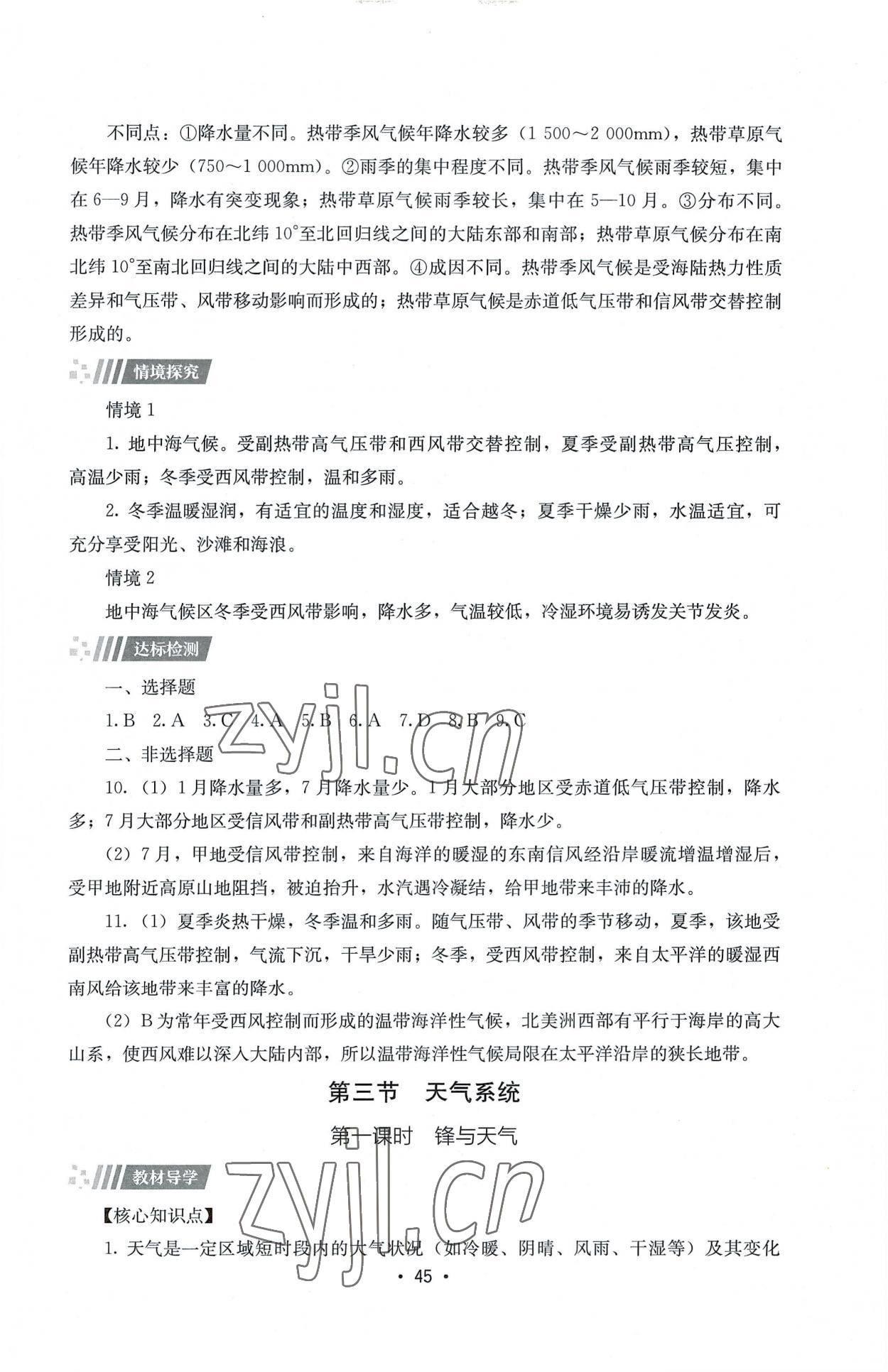 2022年同步练习册湖南教育出版社高中地理选择性必修1湘教版