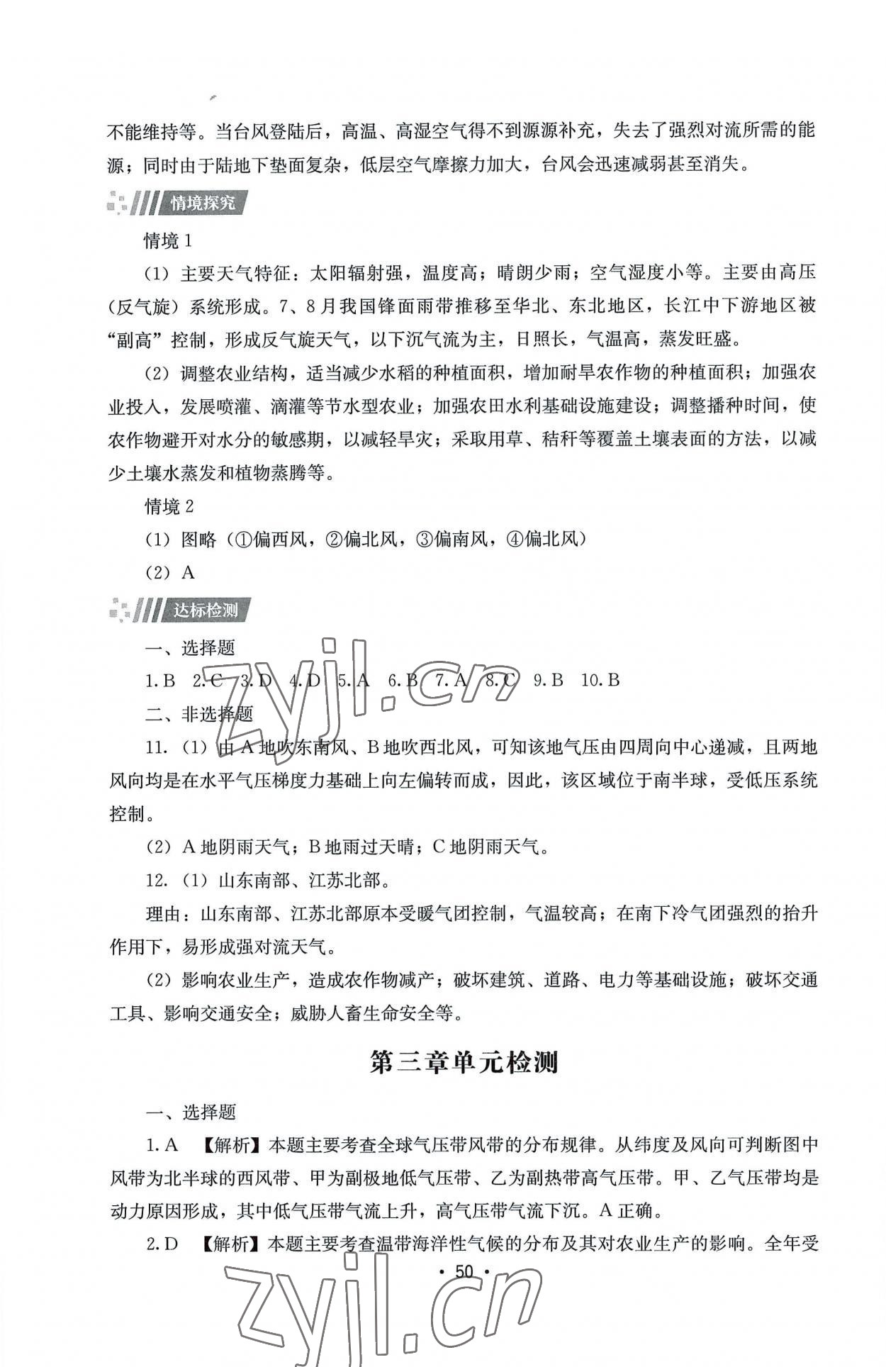 2022年同步练习册湖南教育出版社高中地理选择性必修1湘教版