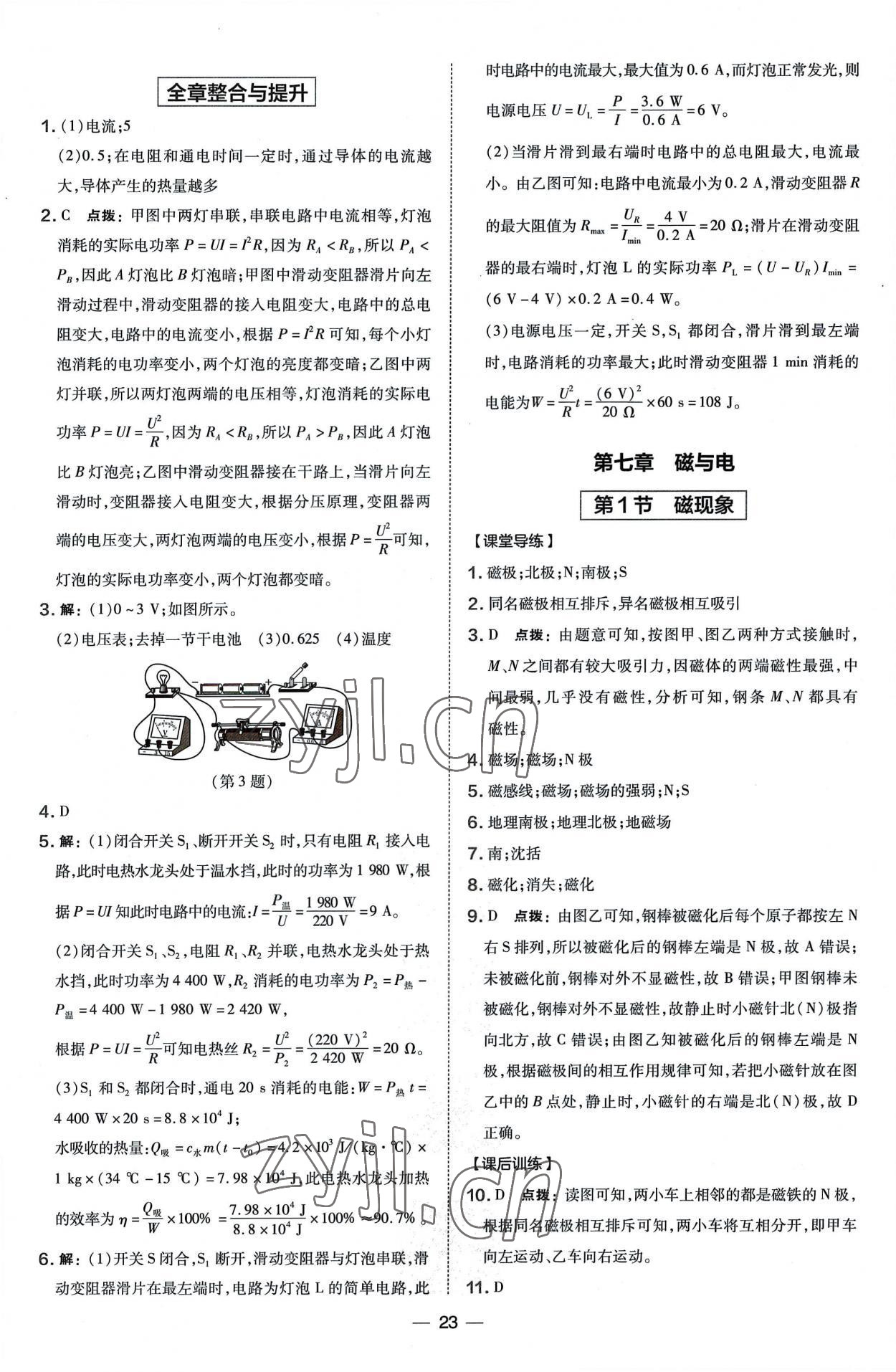 注:目前有些书本章节名称可能整理的还不是很完善,但都是按照顺序排列的,请同学们按照顺序仔细查找。练习册 2022年点拨训练九年级物理全一册教科版 答案主要是用来给同学们做完题方便对答案用的,请勿直接抄袭。