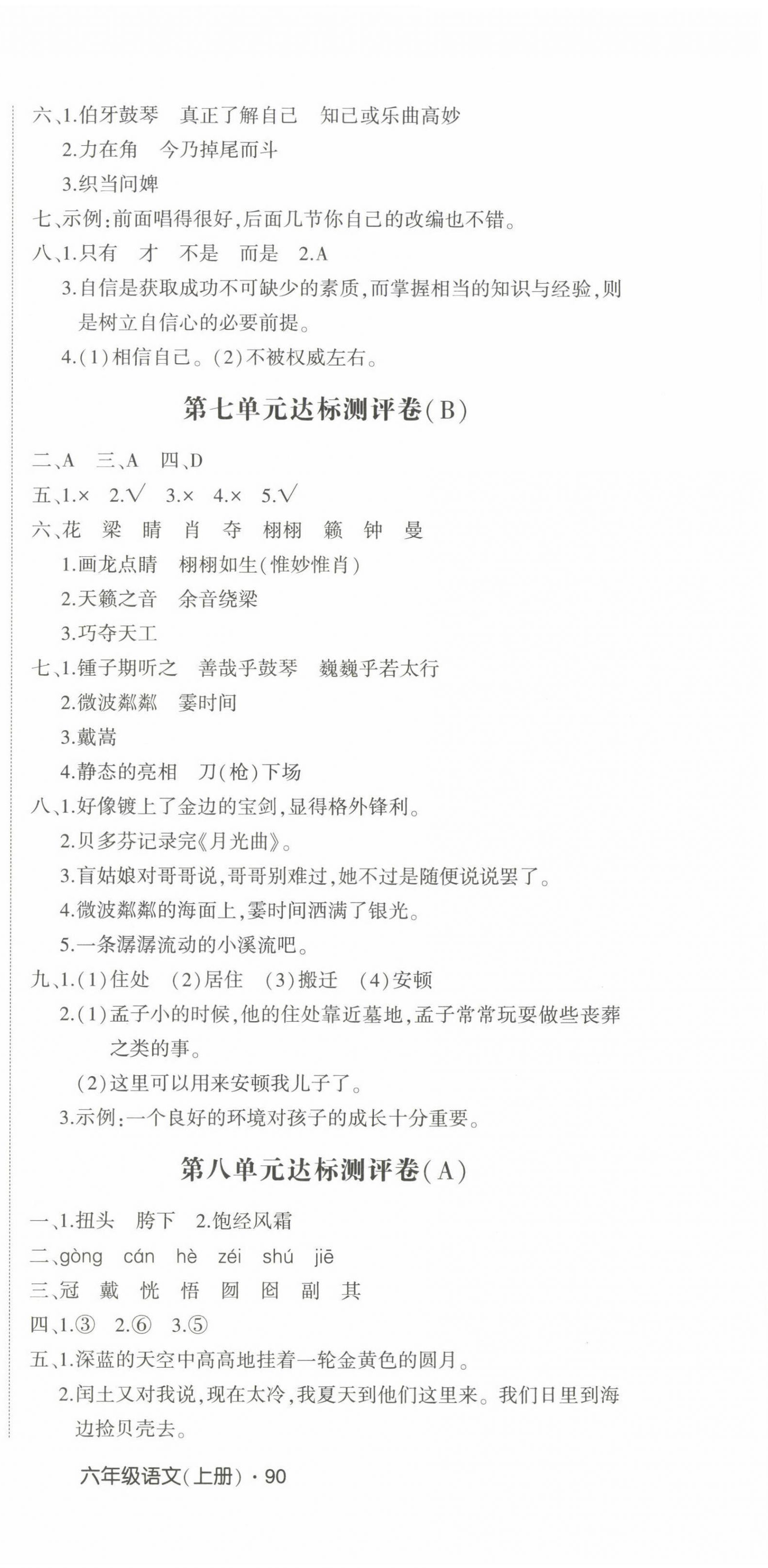 2022年单元同步核心素养与能力达标测评卷六年级语文上册人教版