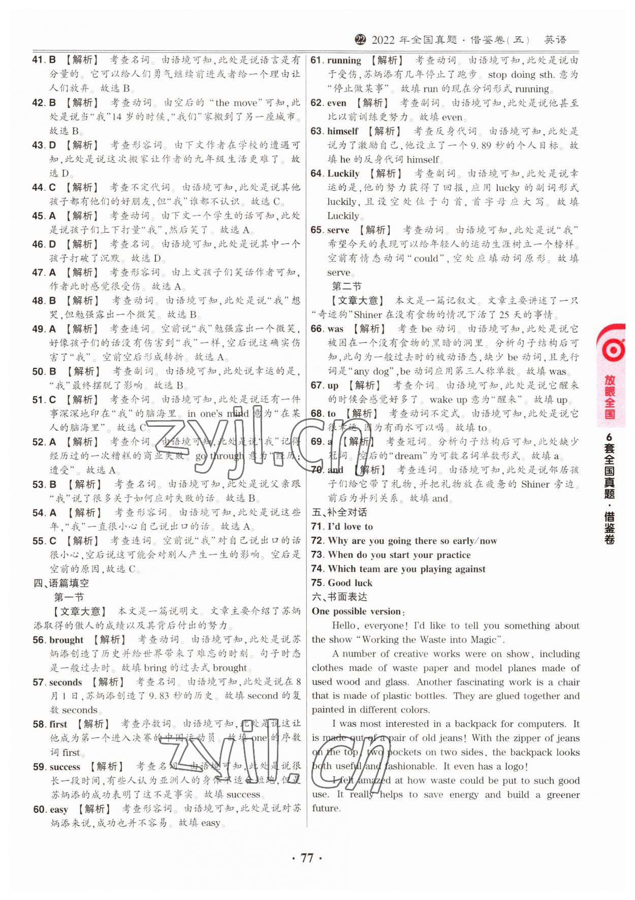 注:目前有些书本章节名称可能整理的还不是很完善,但都是按照顺序排列的,请同学们按照顺序仔细查找。练习册 2023年鼎成中考模拟试卷精编英语河南专版 答案主要是用来给同学们做完题方便对答案用的,请勿直接抄袭。