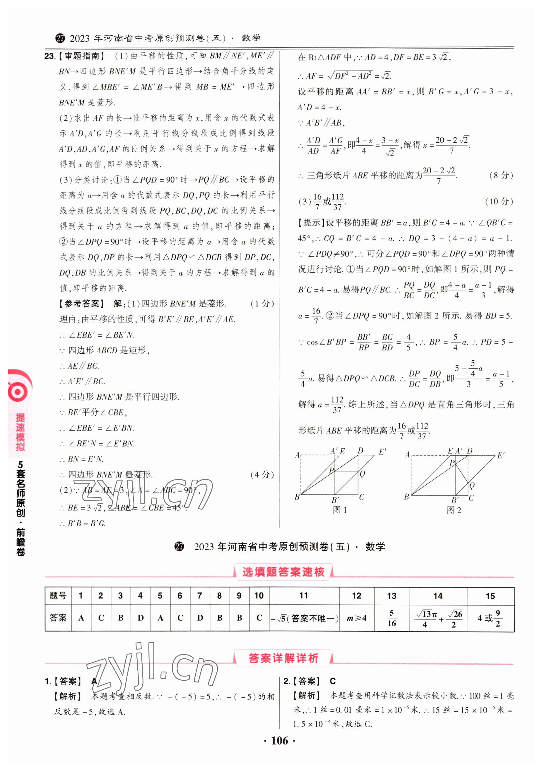 注:目前有些书本章节名称可能整理的还不是很完善,但都是按照顺序排列的,请同学们按照顺序仔细查找。练习册 2023年鼎成中考模拟试卷精编数学河南专版 答案主要是用来给同学们做完题方便对答案用的,请勿直接抄袭。