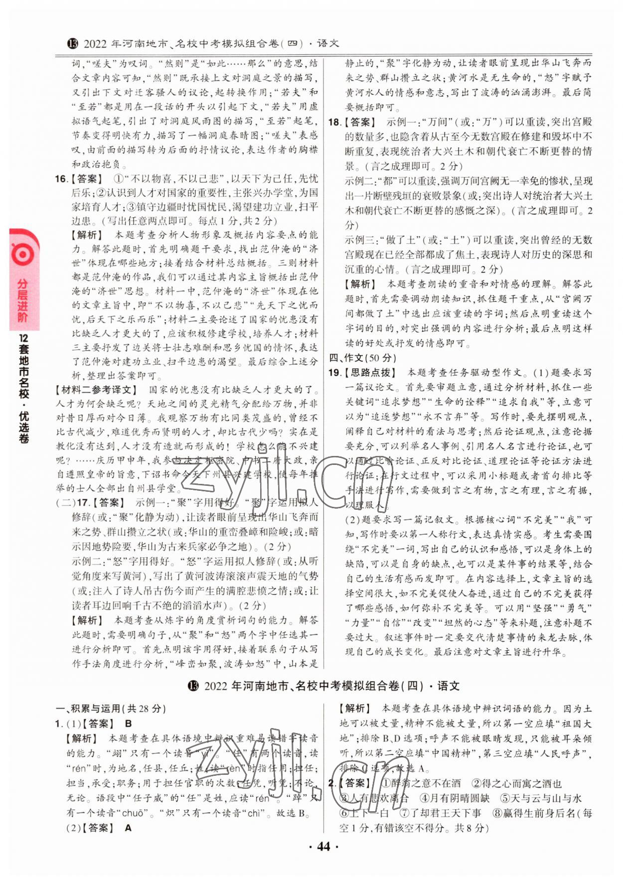 注:目前有些书本章节名称可能整理的还不是很完善,但都是按照顺序排列的,请同学们按照顺序仔细查找。练习册 2023年鼎成中考模拟试卷精编语文河南专版 答案主要是用来给同学们做完题方便对答案用的,请勿直接抄袭。