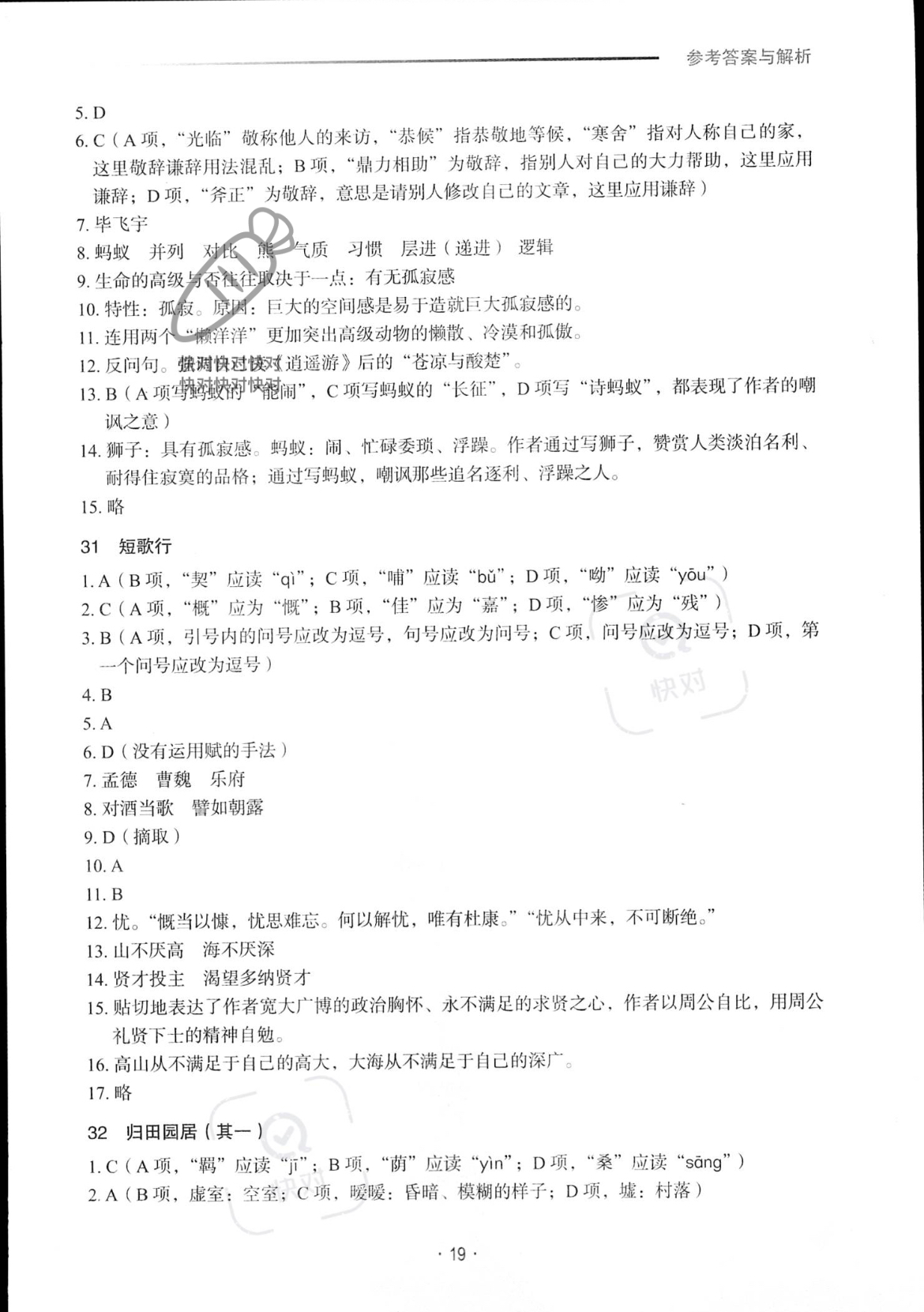 注:目前有些书本章节名称可能整理的还不是很完善,但都是按照顺序排列的,请同学们按照顺序仔细查找。练习册 2022年福建省中等职业学校学业水平考试复习指导丛书语文人教版 答案主要是用来给同学们做完题方便对答案用的,请勿直接抄袭。