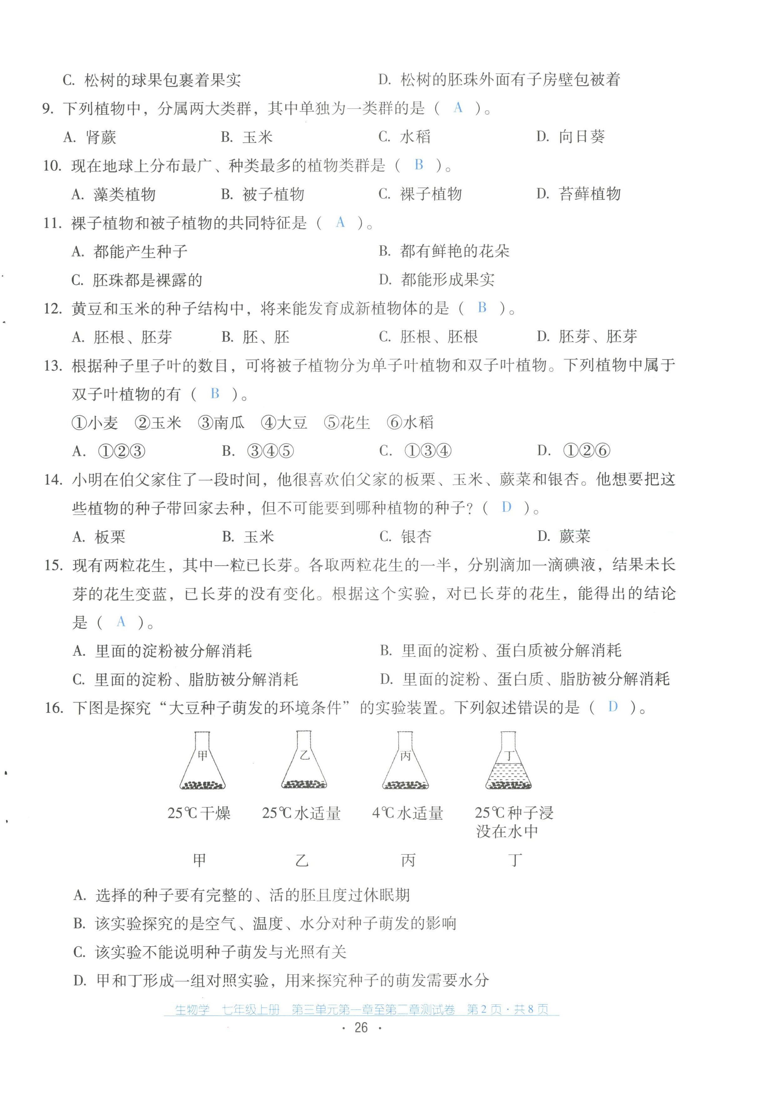 注:目前有些书本章节名称可能整理的还不是很完善,但都是按照顺序排列的,请同学们按照顺序仔细查找。练习册 2022年云南省标准教辅优佳学案配套测试卷七年级生物上册人教版 答案主要是用来给同学们做完题方便对答案用的,请勿直接抄袭。