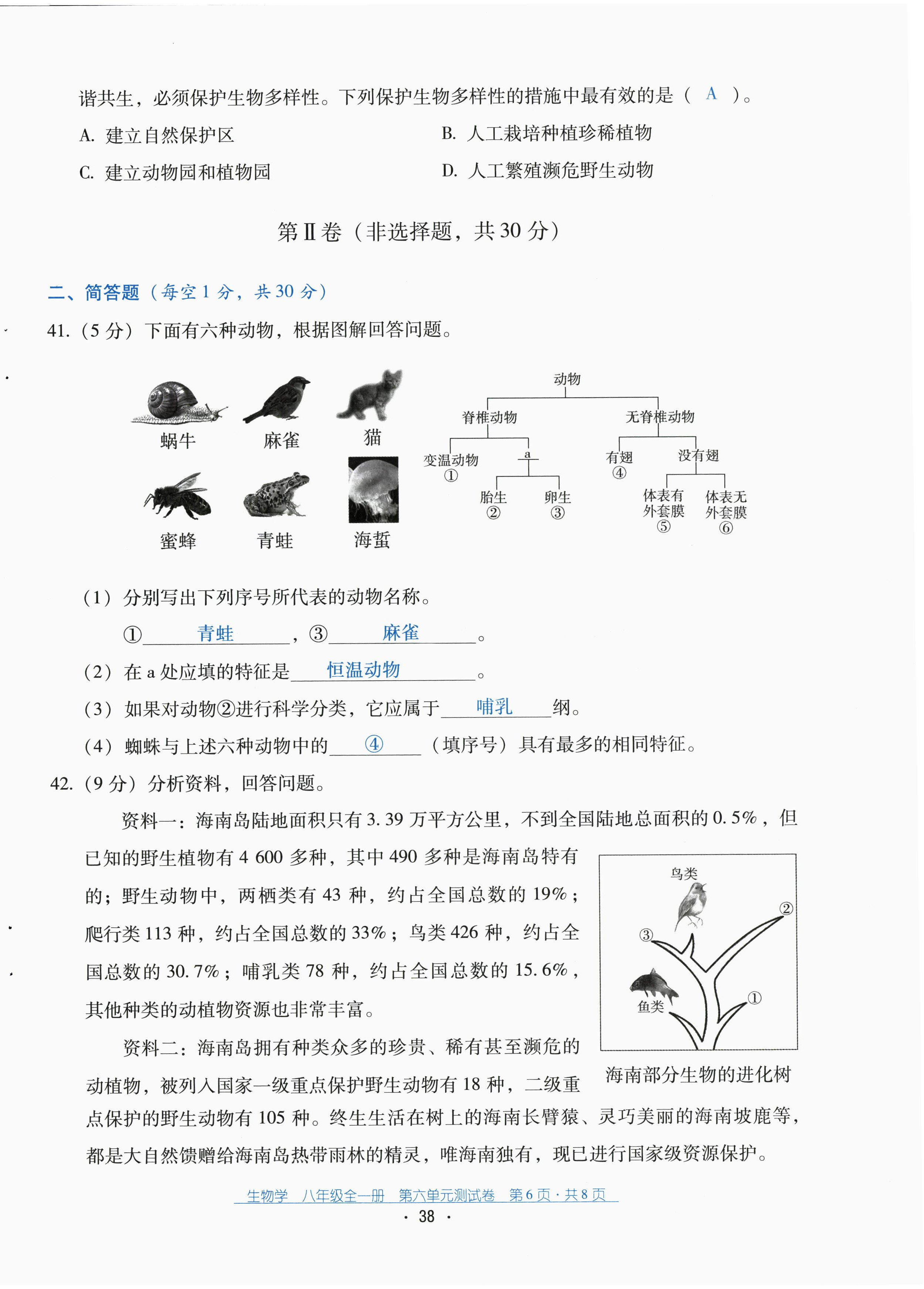 注:目前有些书本章节名称可能整理的还不是很完善,但都是按照顺序排列的,请同学们按照顺序仔细查找。练习册 2022年云南省标准教辅优佳学案配套测试卷八年级生物全一册人教版 答案主要是用来给同学们做完题方便对答案用的,请勿直接抄袭。