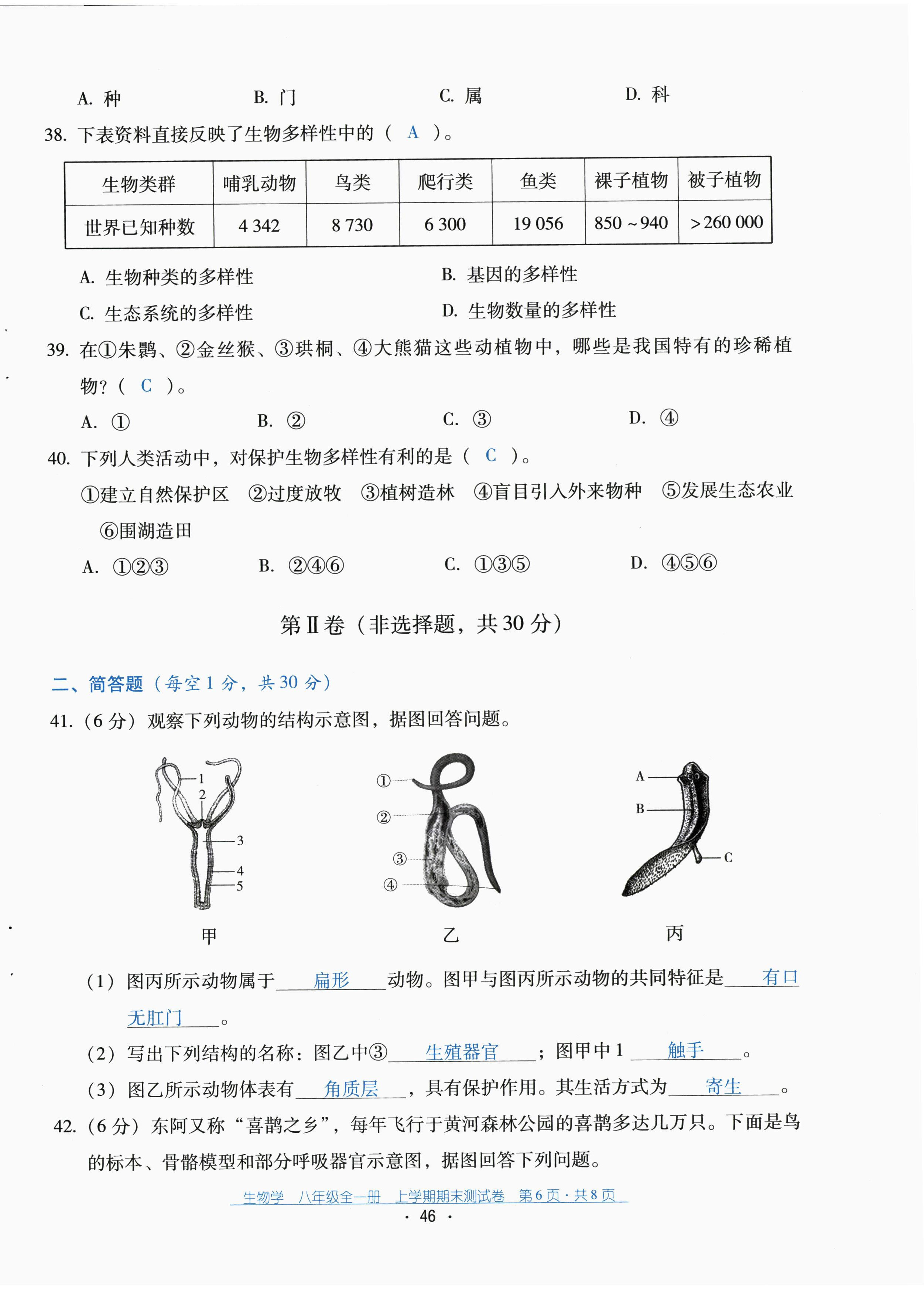 注:目前有些书本章节名称可能整理的还不是很完善,但都是按照顺序排列的,请同学们按照顺序仔细查找。练习册 2022年云南省标准教辅优佳学案配套测试卷八年级生物全一册人教版 答案主要是用来给同学们做完题方便对答案用的,请勿直接抄袭。