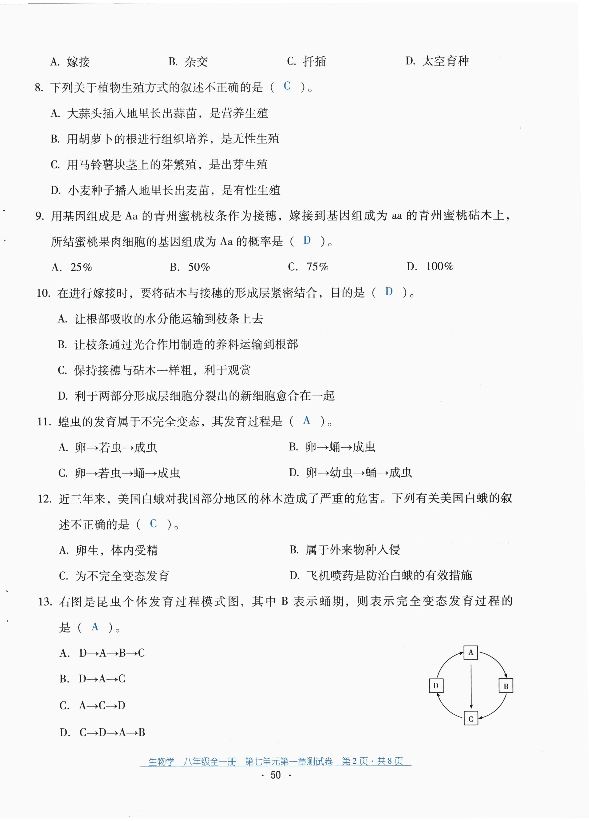 2022年云南省标准教辅优佳学案配套测试卷八年级生物全一册人教版
