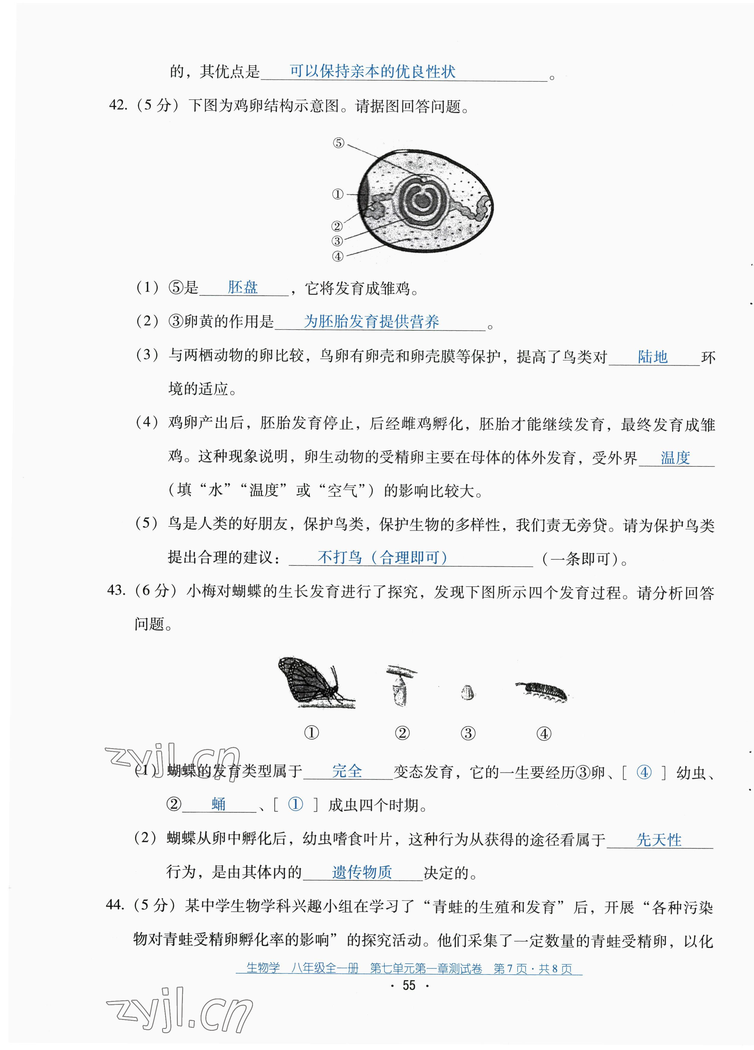 2022年云南省标准教辅优佳学案配套测试卷八年级生物全一册人教版