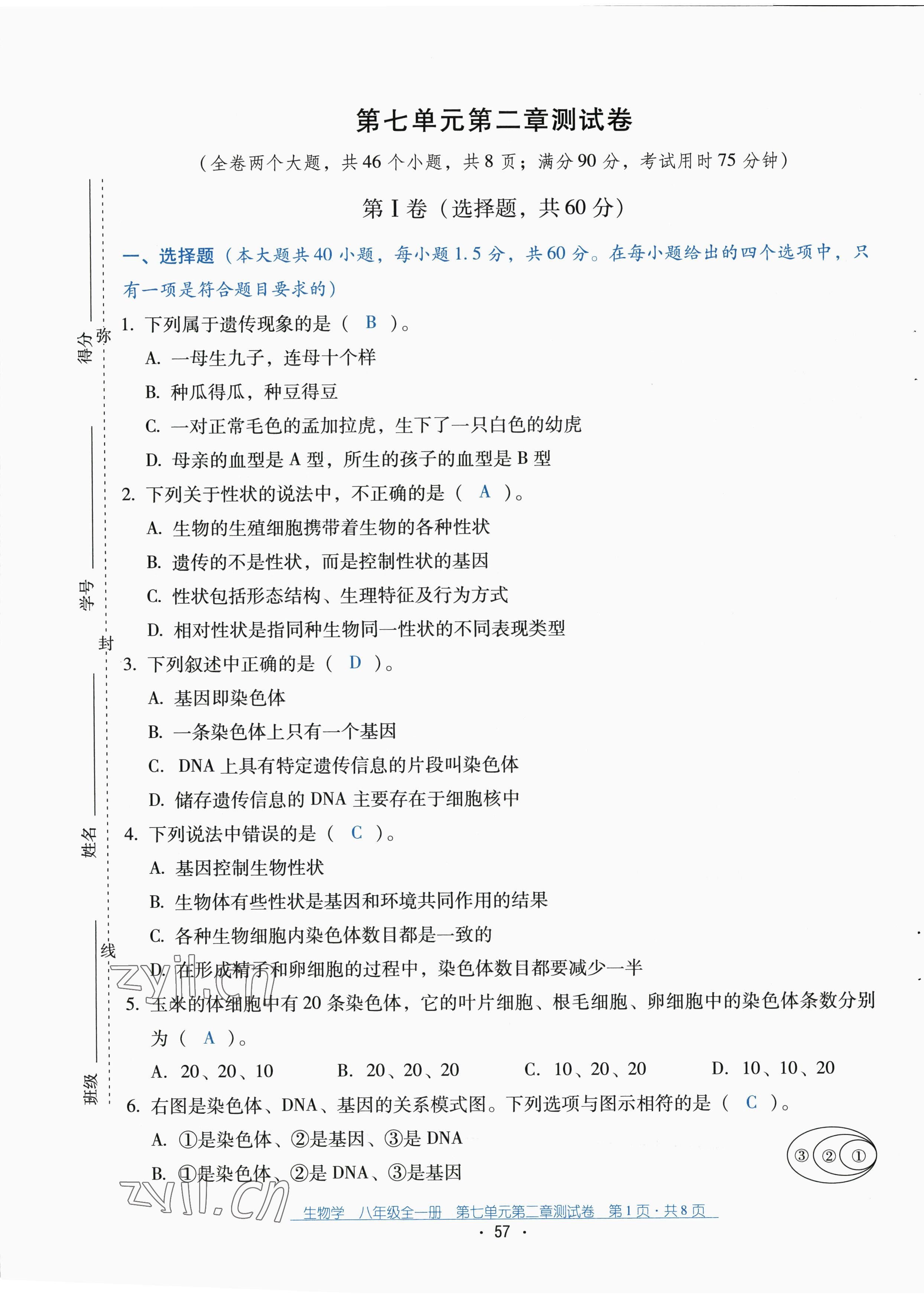 注:目前有些书本章节名称可能整理的还不是很完善,但都是按照顺序排列的,请同学们按照顺序仔细查找。练习册 2022年云南省标准教辅优佳学案配套测试卷八年级生物全一册人教版 答案主要是用来给同学们做完题方便对答案用的,请勿直接抄袭。