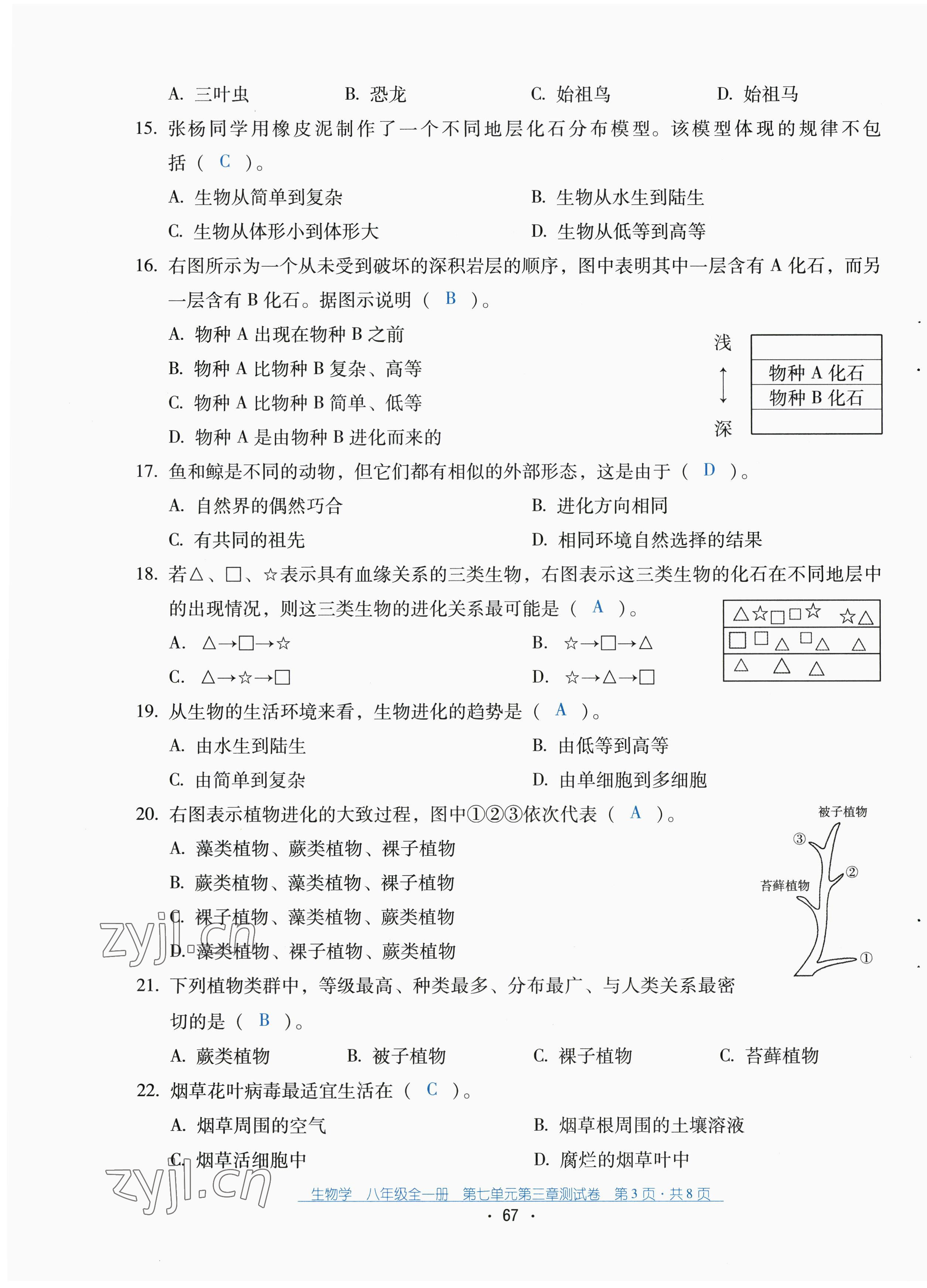 注:目前有些书本章节名称可能整理的还不是很完善,但都是按照顺序排列的,请同学们按照顺序仔细查找。练习册 2022年云南省标准教辅优佳学案配套测试卷八年级生物全一册人教版 答案主要是用来给同学们做完题方便对答案用的,请勿直接抄袭。