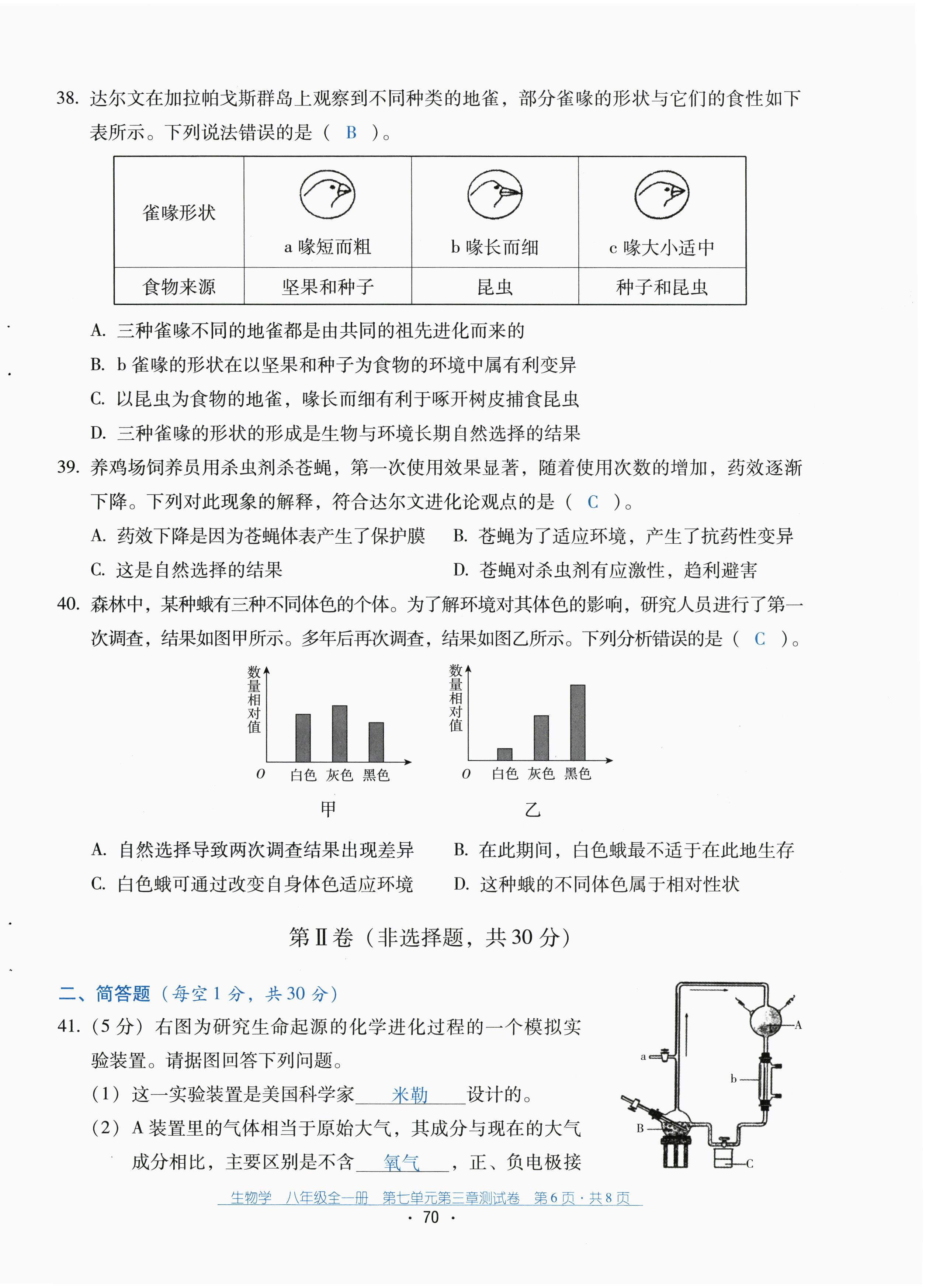注:目前有些书本章节名称可能整理的还不是很完善,但都是按照顺序排列的,请同学们按照顺序仔细查找。练习册 2022年云南省标准教辅优佳学案配套测试卷八年级生物全一册人教版 答案主要是用来给同学们做完题方便对答案用的,请勿直接抄袭。