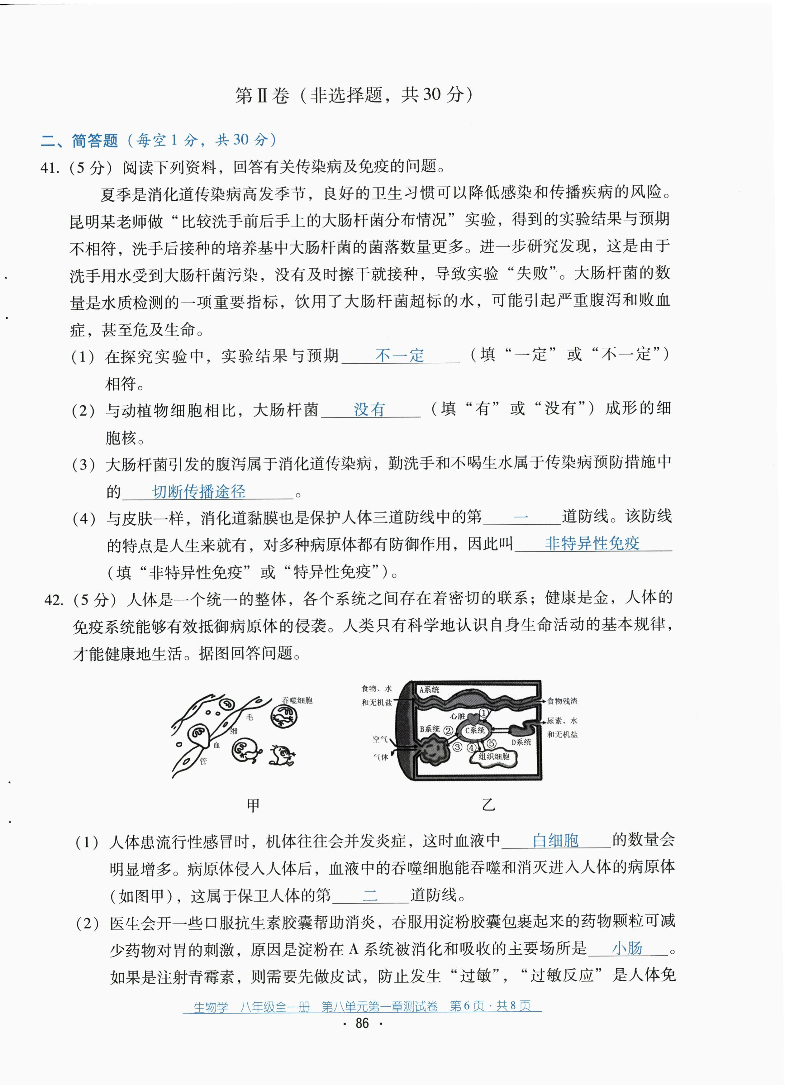 注:目前有些书本章节名称可能整理的还不是很完善,但都是按照顺序排列的,请同学们按照顺序仔细查找。练习册 2022年云南省标准教辅优佳学案配套测试卷八年级生物全一册人教版 答案主要是用来给同学们做完题方便对答案用的,请勿直接抄袭。