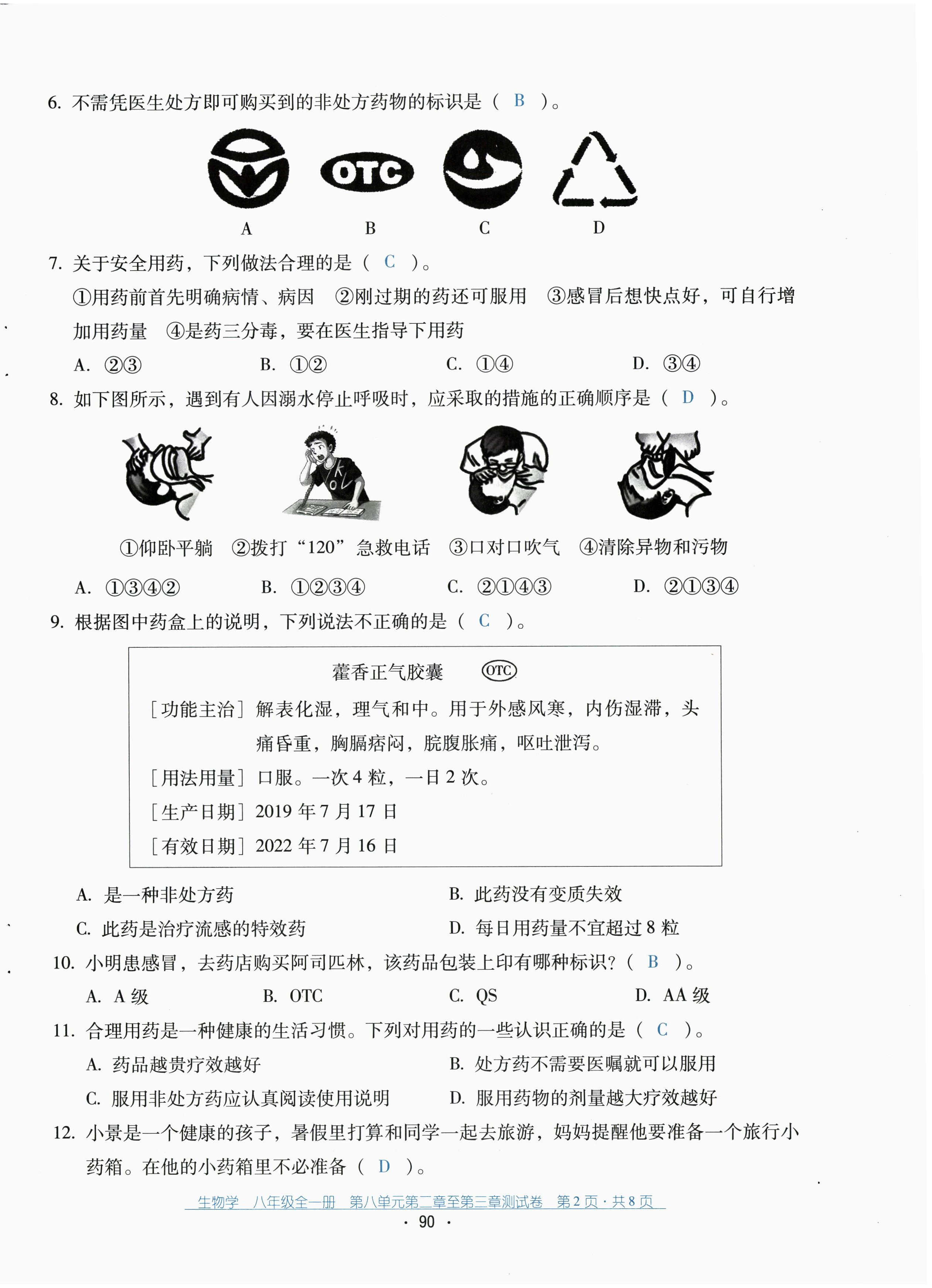 2022年云南省标准教辅优佳学案配套测试卷八年级生物全一册人教版