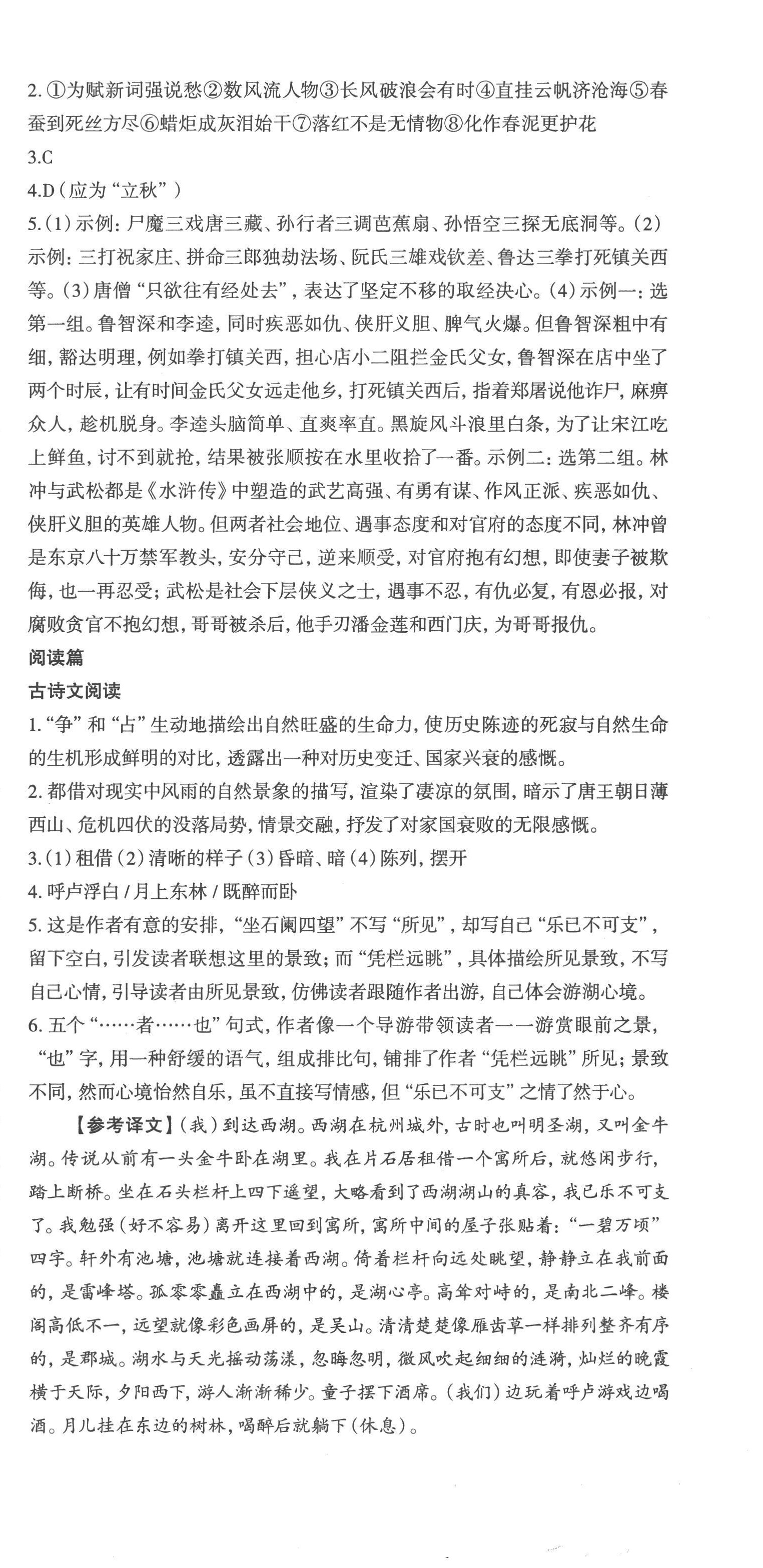 注:目前有些书本章节名称可能整理的还不是很完善,但都是按照顺序排列的,请同学们按照顺序仔细查找。练习册 2022年智慧语文读练测九年级语文人教版 答案主要是用来给同学们做完题方便对答案用的,请勿直接抄袭。