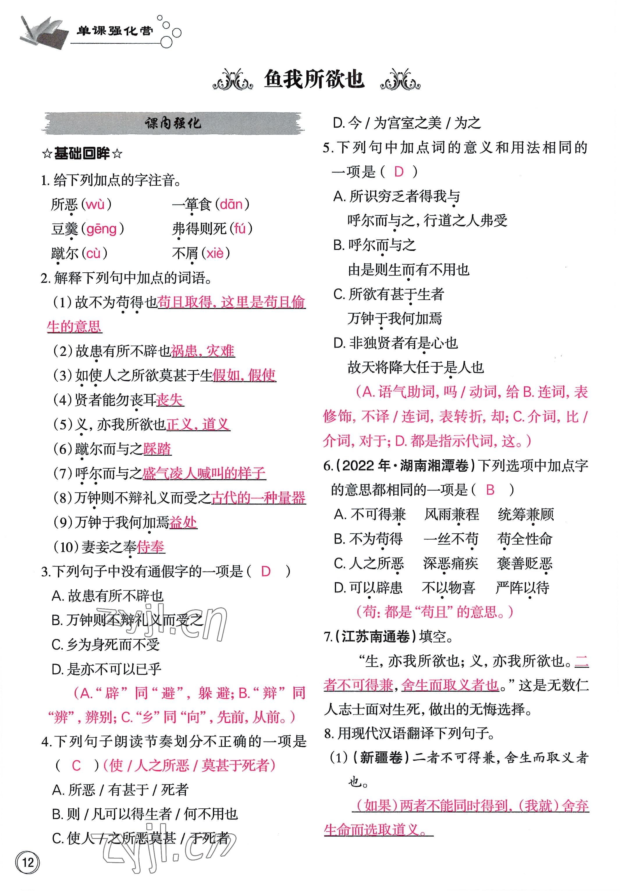 注:目前有些书本章节名称可能整理的还不是很完善,但都是按照顺序排列的,请同学们按照顺序仔细查找。练习册 2022年智慧语文读练测九年级语文人教版 答案主要是用来给同学们做完题方便对答案用的,请勿直接抄袭。