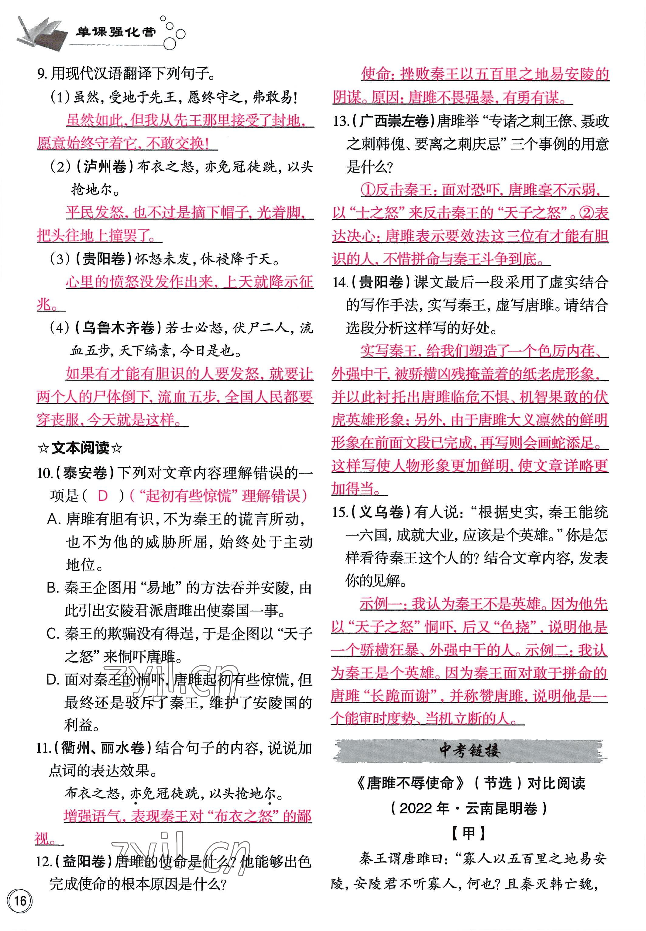 注:目前有些书本章节名称可能整理的还不是很完善,但都是按照顺序排列的,请同学们按照顺序仔细查找。练习册 2022年智慧语文读练测九年级语文人教版 答案主要是用来给同学们做完题方便对答案用的,请勿直接抄袭。
