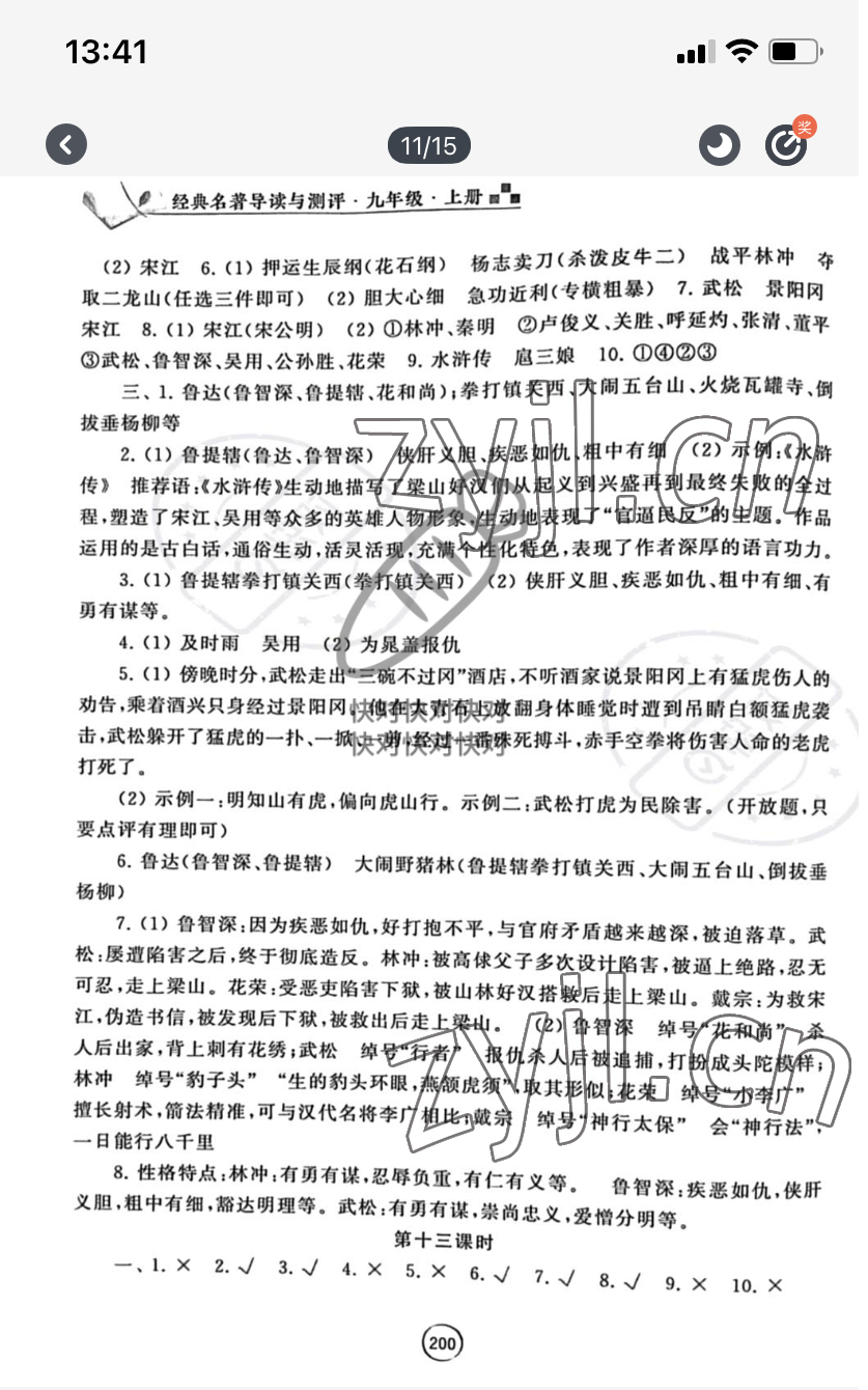 注:目前有些书本章节名称可能整理的还不是很完善,但都是按照顺序排列的,请同学们按照顺序仔细查找。练习册 2022年经典名著导读与测评九年级语文上册人教版 答案主要是用来给同学们做完题方便对答案用的,请勿直接抄袭。