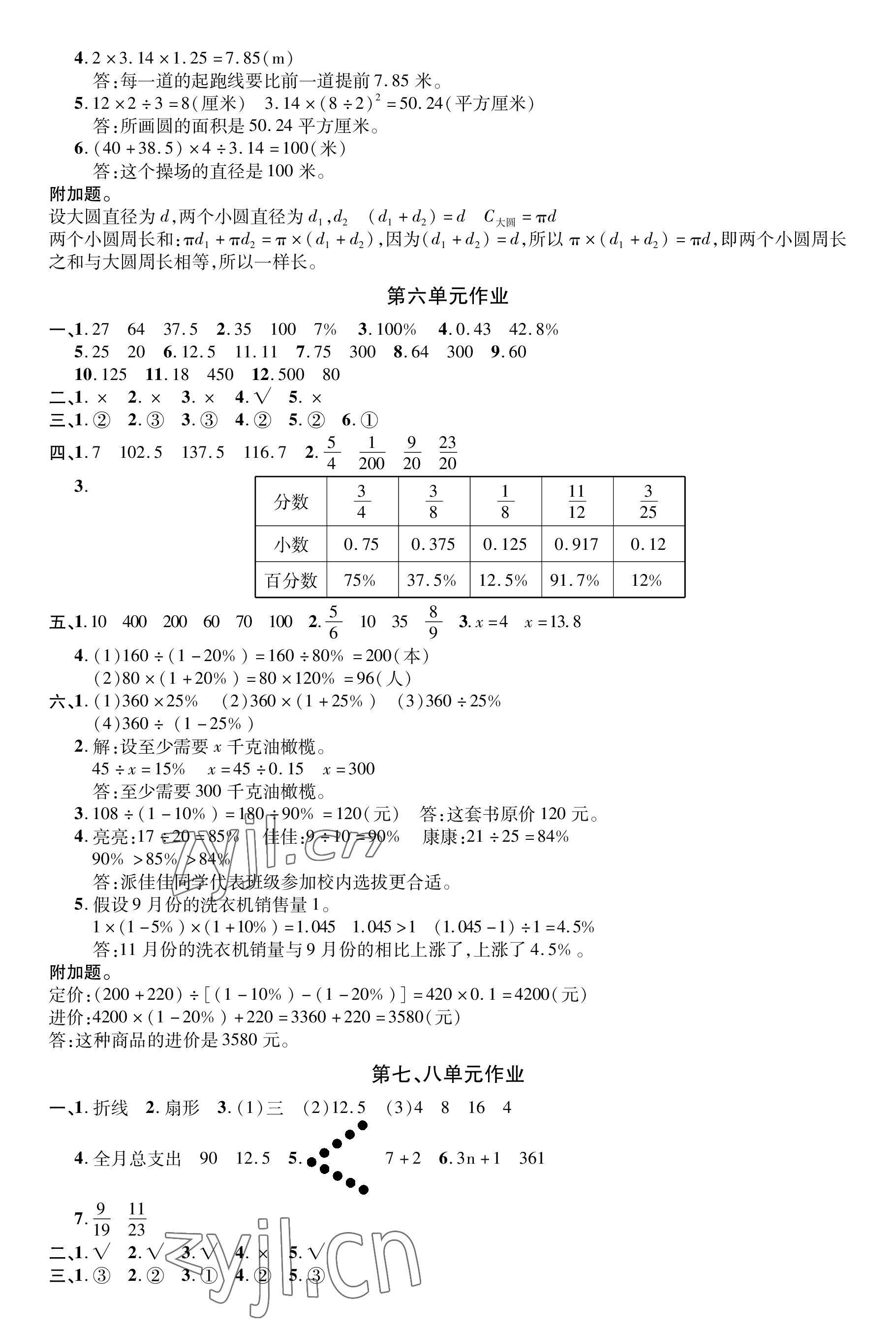 2022年荆州单元作业优化设计六年级数学上册人教版