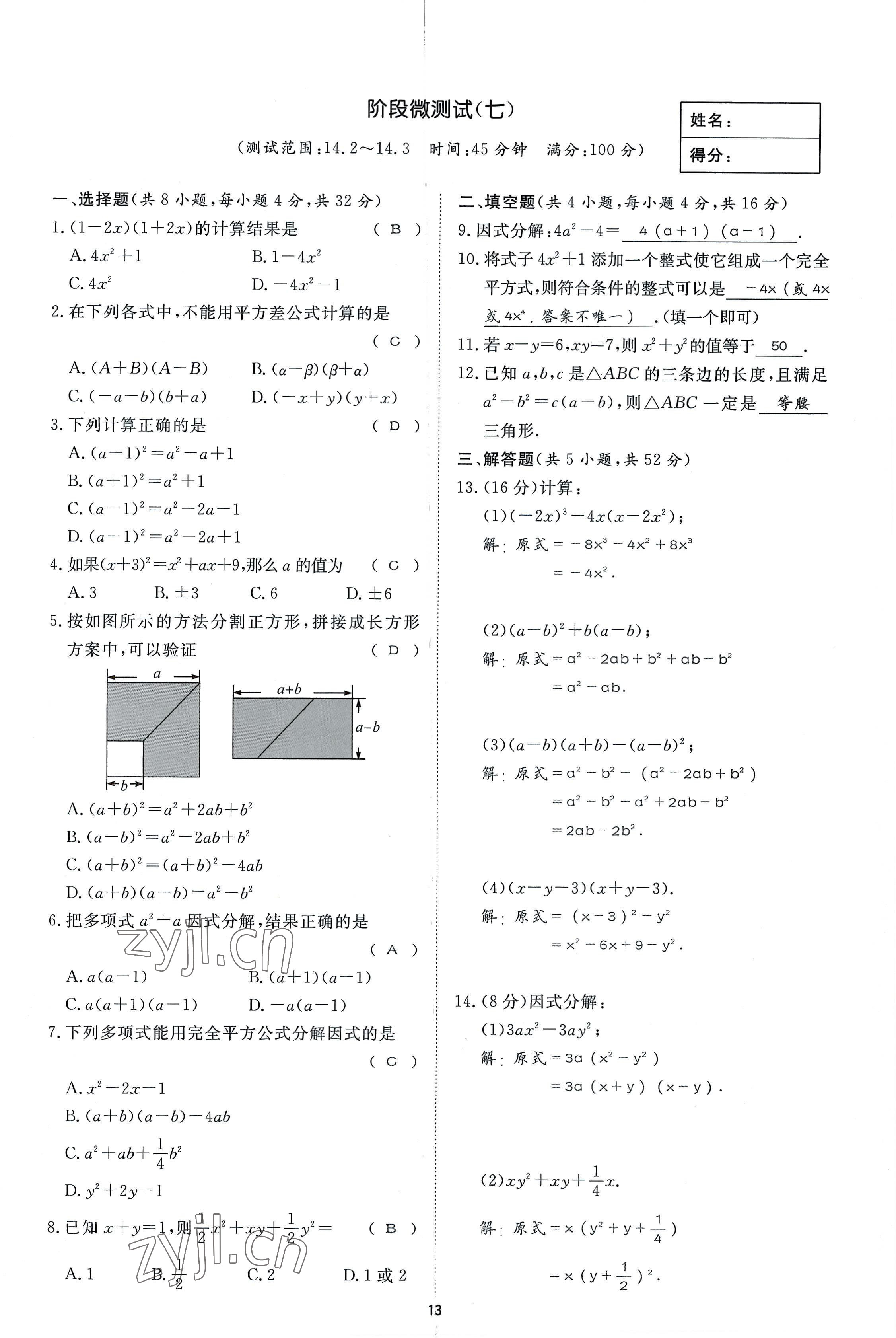 注:目前有些书本章节名称可能整理的还不是很完善,但都是按照顺序排列的,请同学们按照顺序仔细查找。练习册 2022年畅行课堂八年级数学上册人教版河南专版 答案主要是用来给同学们做完题方便对答案用的,请勿直接抄袭。