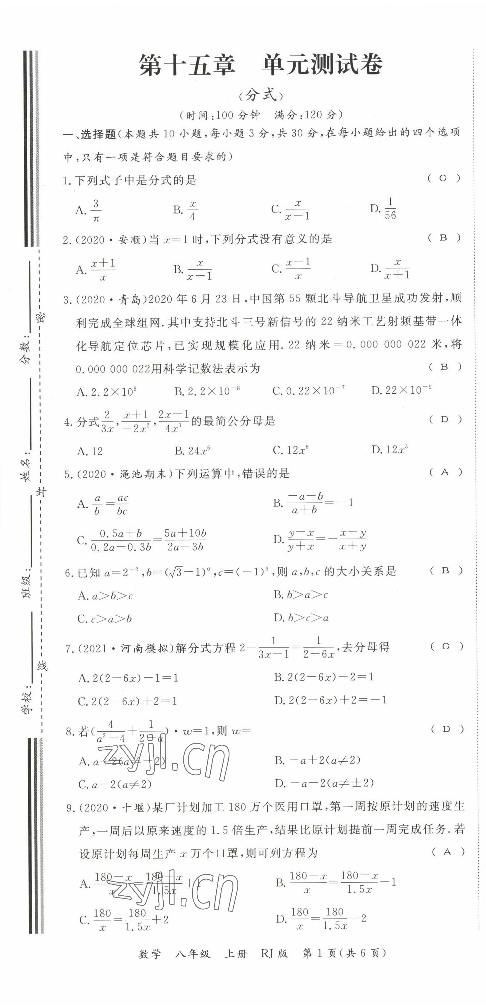 - 参考答案第8页