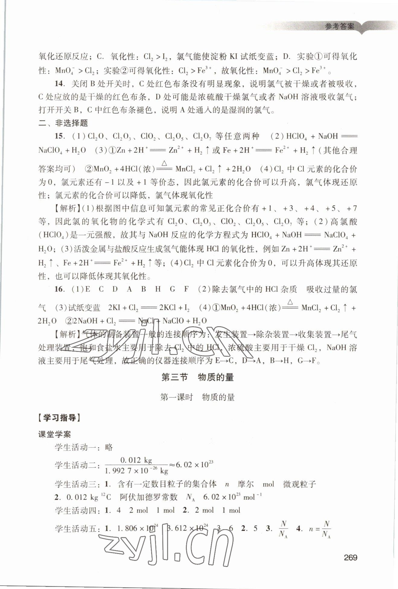 注:目前有些书本章节名称可能整理的还不是很完善,但都是按照顺序排列的,请同学们按照顺序仔细查找。练习册 2022年学习与评价广州出版社高中化学必修第一册人教版 答案主要是用来给同学们做完题方便对答案用的,请勿直接抄袭。