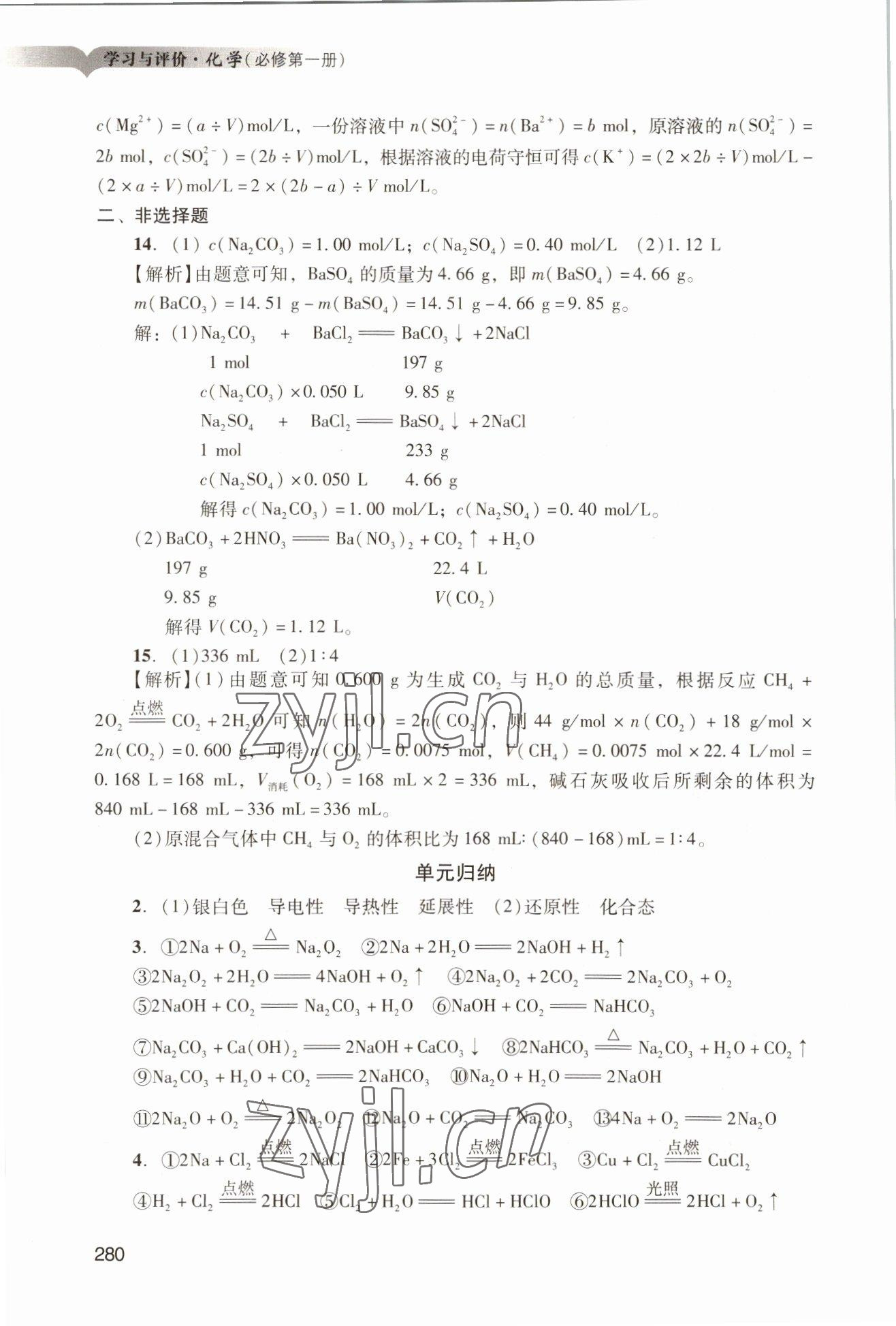 2022年学习与评价广州出版社高中化学必修第一册人教版