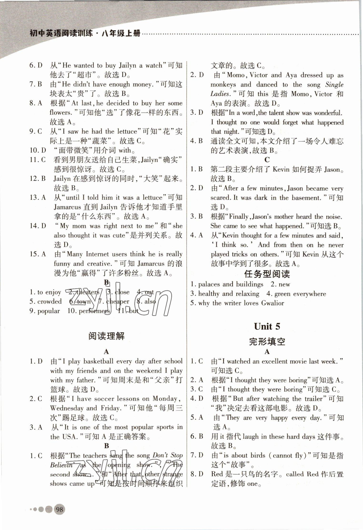 注:目前有些书本章节名称可能整理的还不是很完善,但都是按照顺序排列的,请同学们按照顺序仔细查找。练习册 2022年英语阅读训练八年级人教版 答案主要是用来给同学们做完题方便对答案用的,请勿直接抄袭。