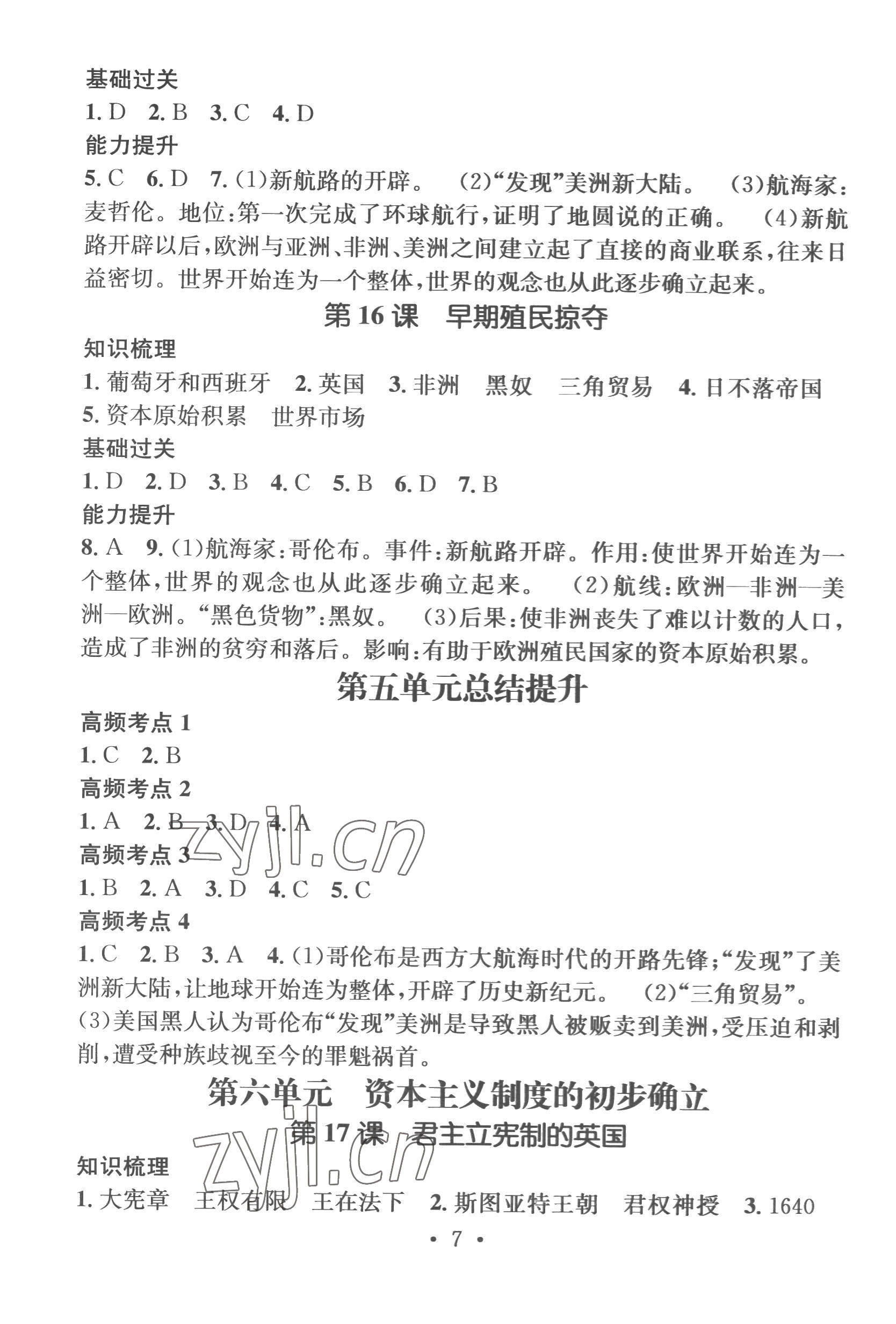 注:目前有些书本章节名称可能整理的还不是很完善,但都是按照顺序排列的,请同学们按照顺序仔细查找。练习册 2022年名师测控九年级历史上册人教版襄阳专版 答案主要是用来给同学们做完题方便对答案用的,请勿直接抄袭。