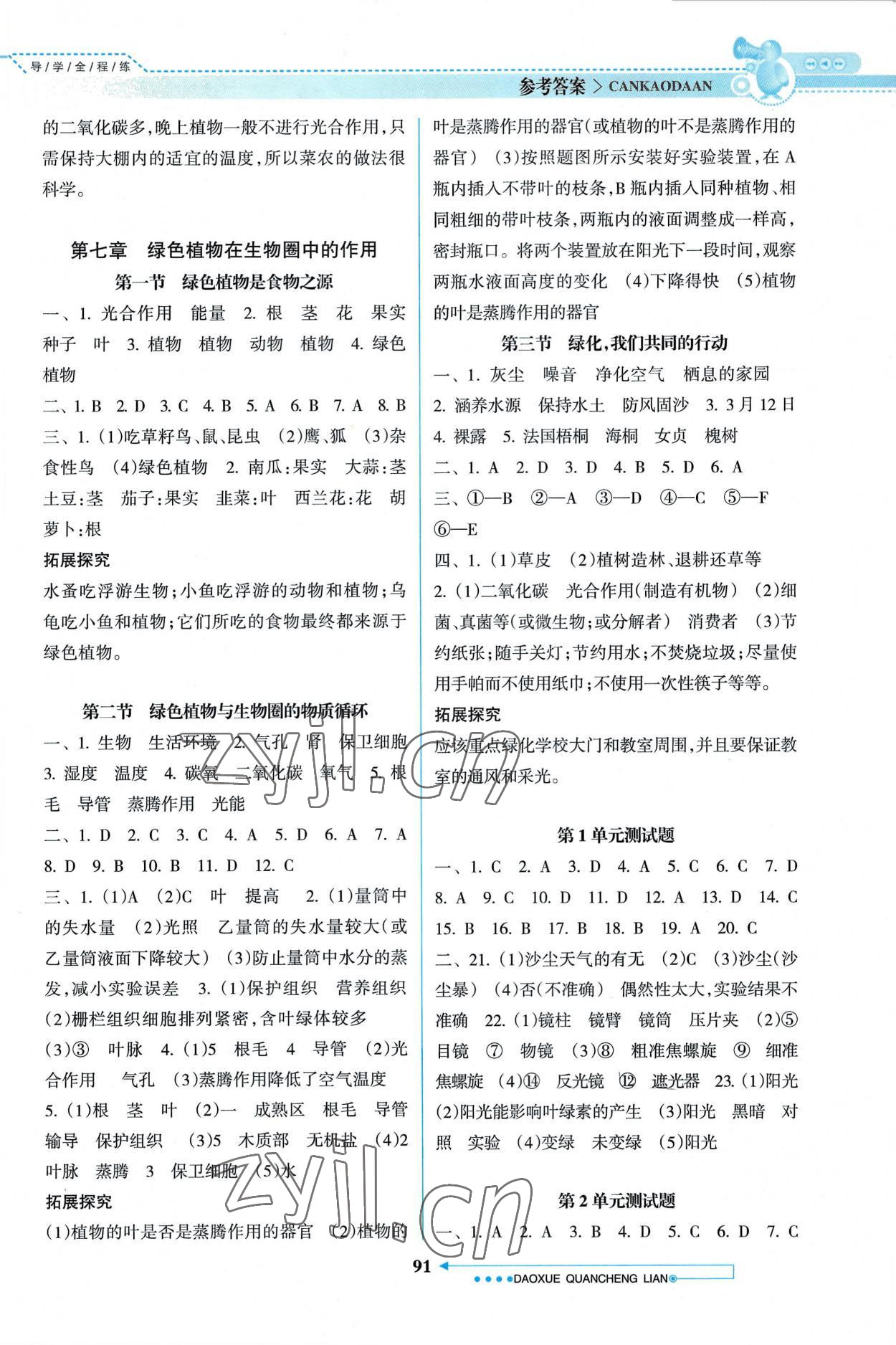注:目前有些书本章节名称可能整理的还不是很完善,但都是按照顺序排列的,请同学们按照顺序仔细查找。练习册 2022年导学全程练创优训练七年级生物上册苏教版 答案主要是用来给同学们做完题方便对答案用的,请勿直接抄袭。