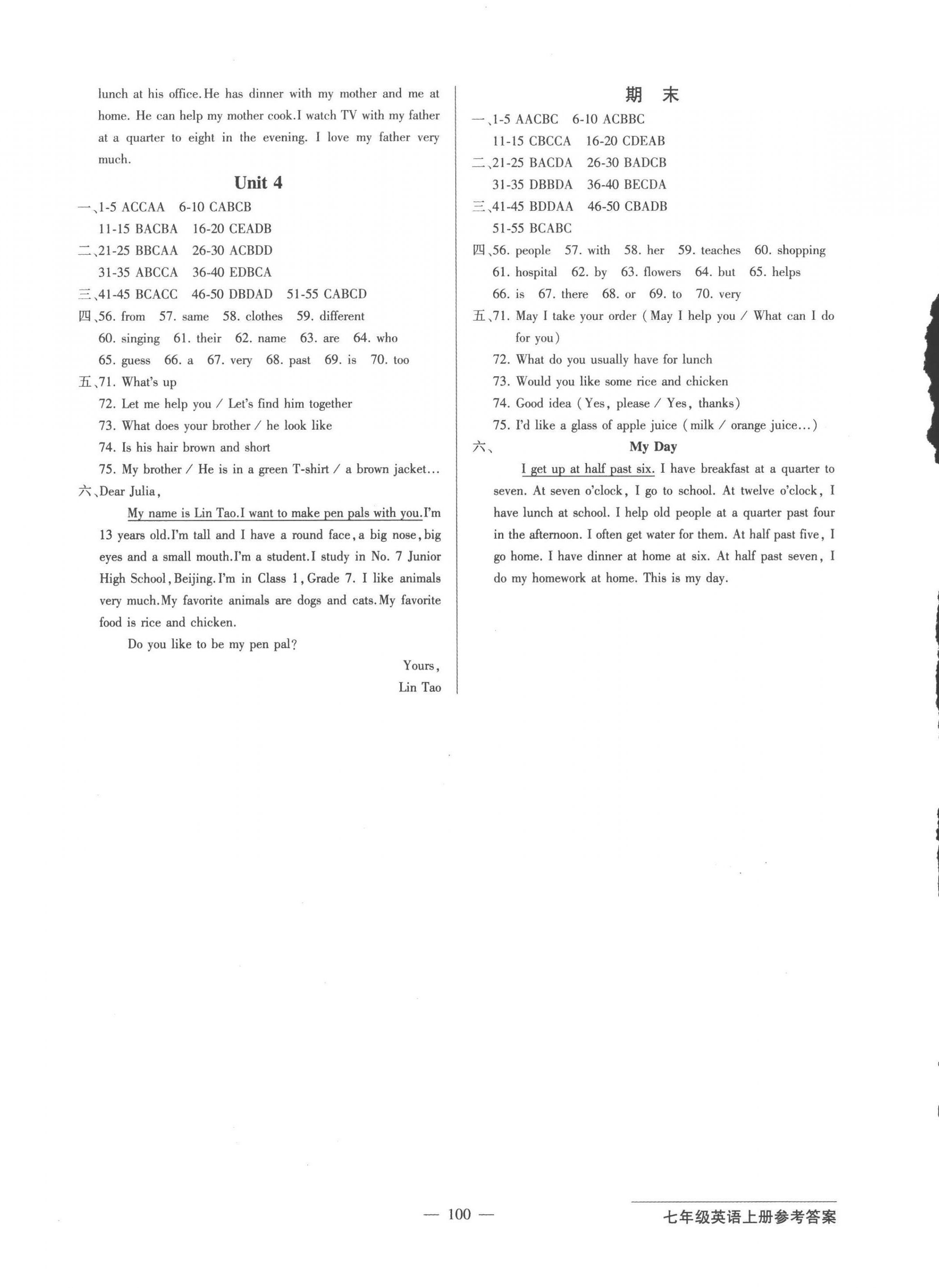 注:目前有些书本章节名称可能整理的还不是很完善,但都是按照顺序排列的,请同学们按照顺序仔细查找。练习册 2022年双料加2单元测试卷七年级英语上册人教版 答案主要是用来给同学们做完题方便对答案用的,请勿直接抄袭。