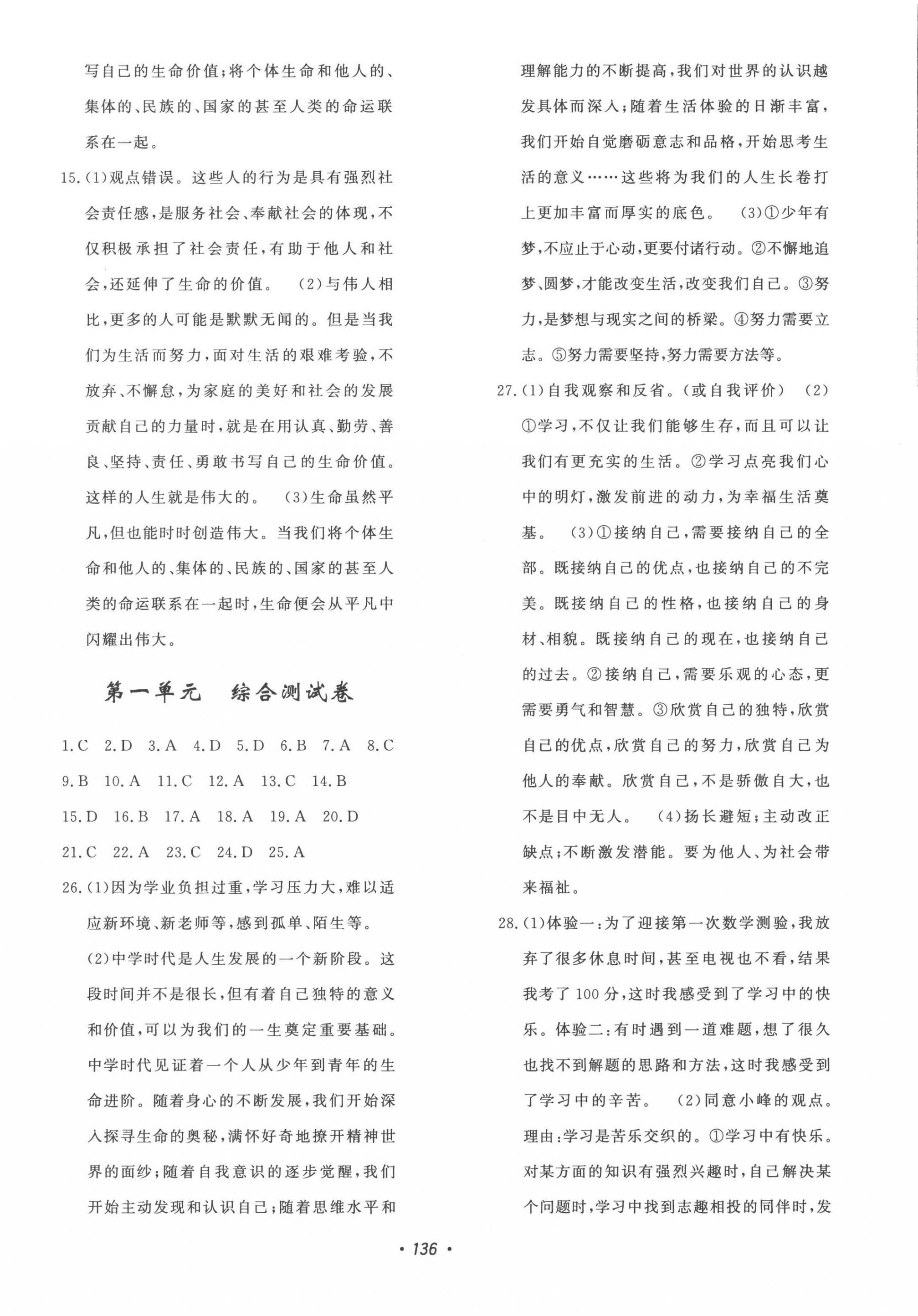 2022年花山小状元课时练初中生100全优卷七年级道德与法治上册人教版