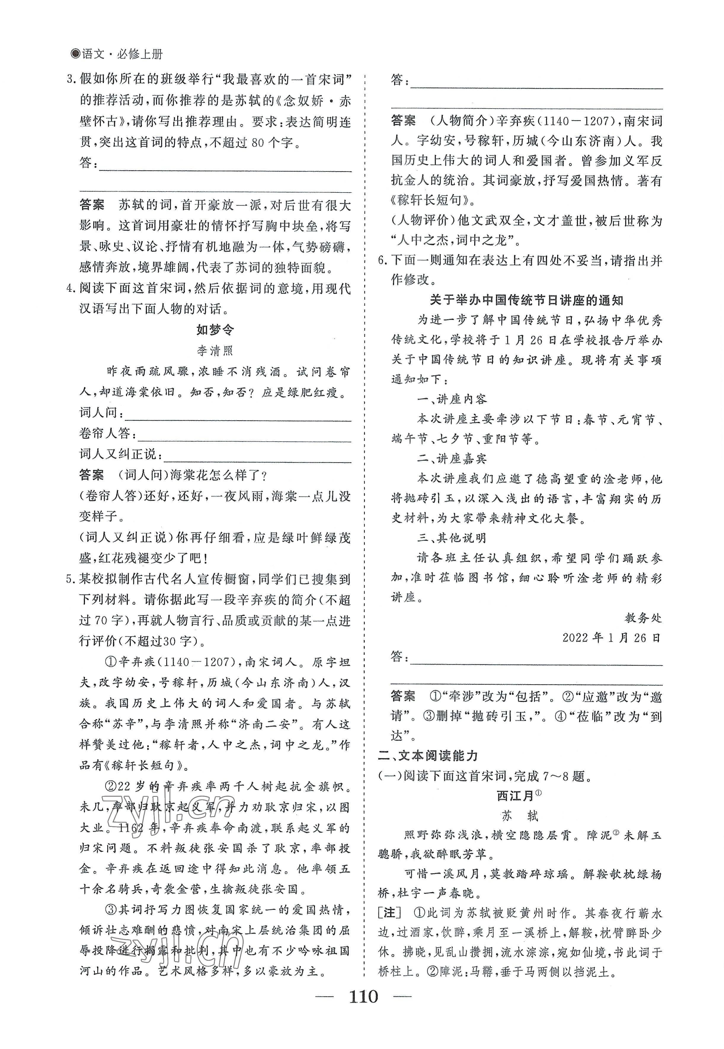- 参考答案第110页