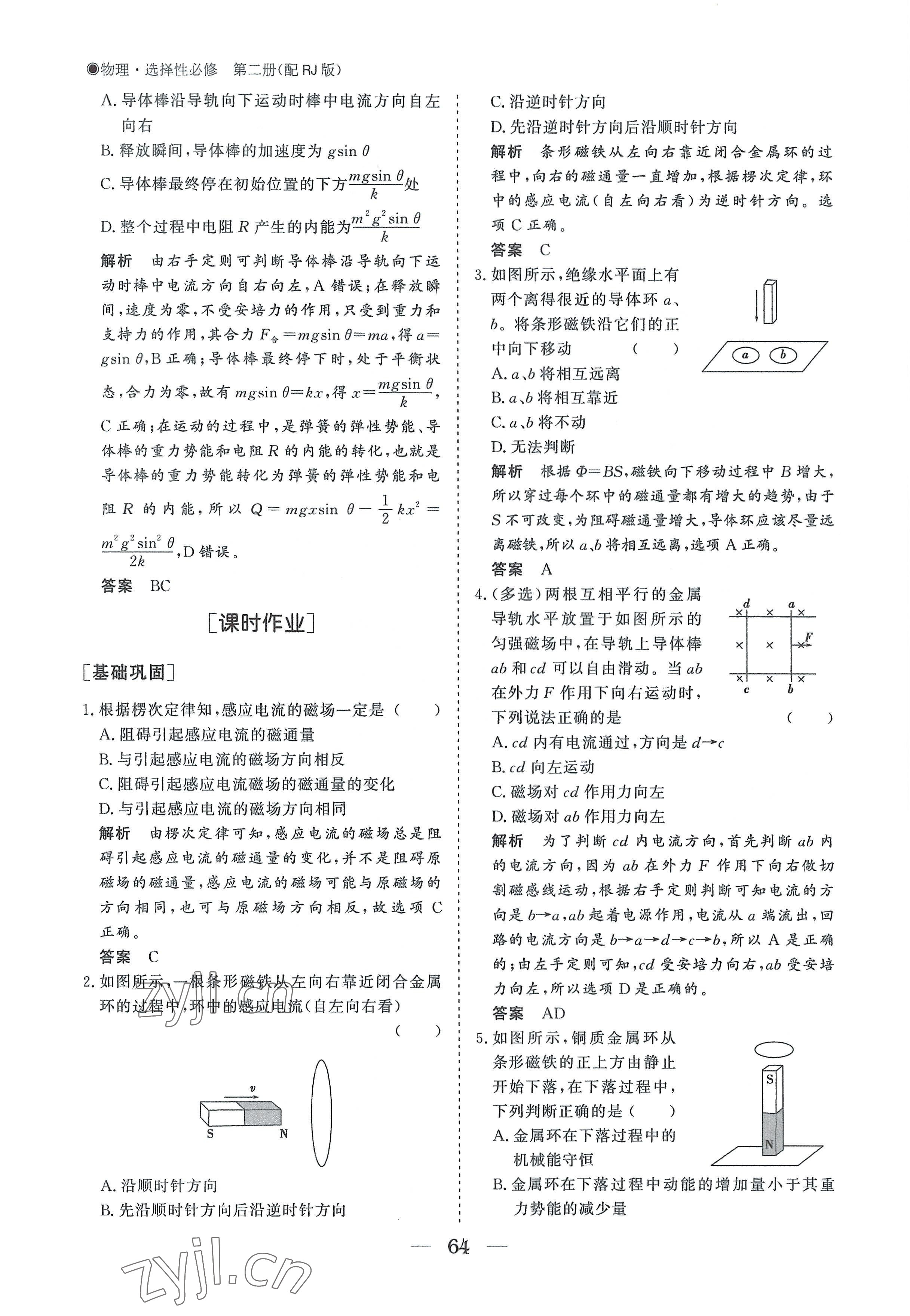 注:目前有些书本章节名称可能整理的还不是很完善,但都是按照顺序排列的,请同学们按照顺序仔细查找。练习册 2022年高中导学测控优化设计方案物理选择性必修第二册人教版 答案主要是用来给同学们做完题方便对答案用的,请勿直接抄袭。