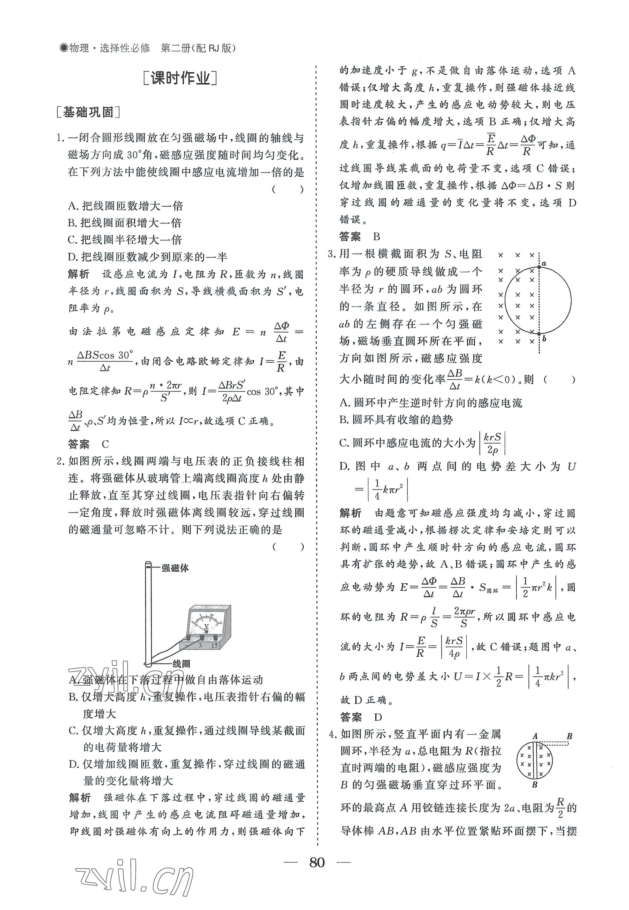 注:目前有些书本章节名称可能整理的还不是很完善,但都是按照顺序排列的,请同学们按照顺序仔细查找。练习册 2022年高中导学测控优化设计方案物理选择性必修第二册人教版 答案主要是用来给同学们做完题方便对答案用的,请勿直接抄袭。