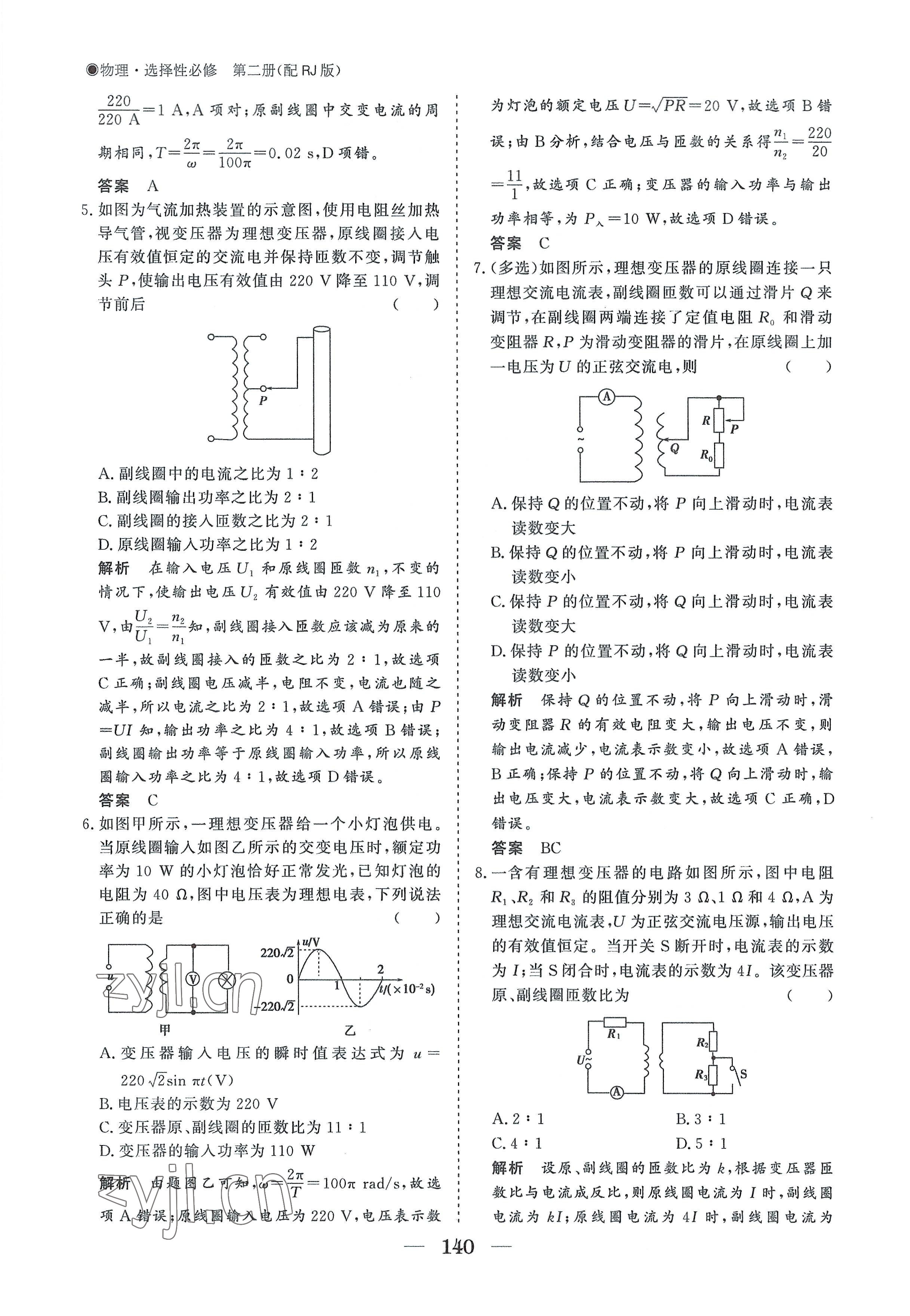 注:目前有些书本章节名称可能整理的还不是很完善,但都是按照顺序排列的,请同学们按照顺序仔细查找。练习册 2022年高中导学测控优化设计方案物理选择性必修第二册人教版 答案主要是用来给同学们做完题方便对答案用的,请勿直接抄袭。